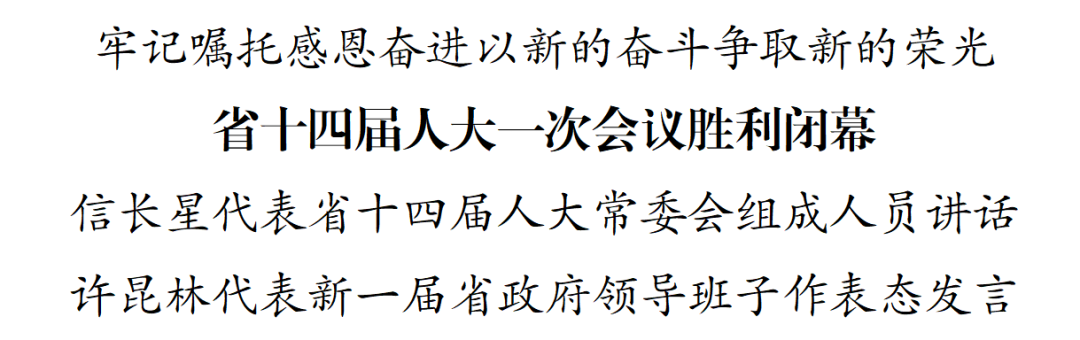 1月19日下午,江苏省第十四届人民代表大会第一次会议在南京胜利闭幕。省委书记、省人大常委会主任信长星,省委副书记、省长许昆林在会上讲话。