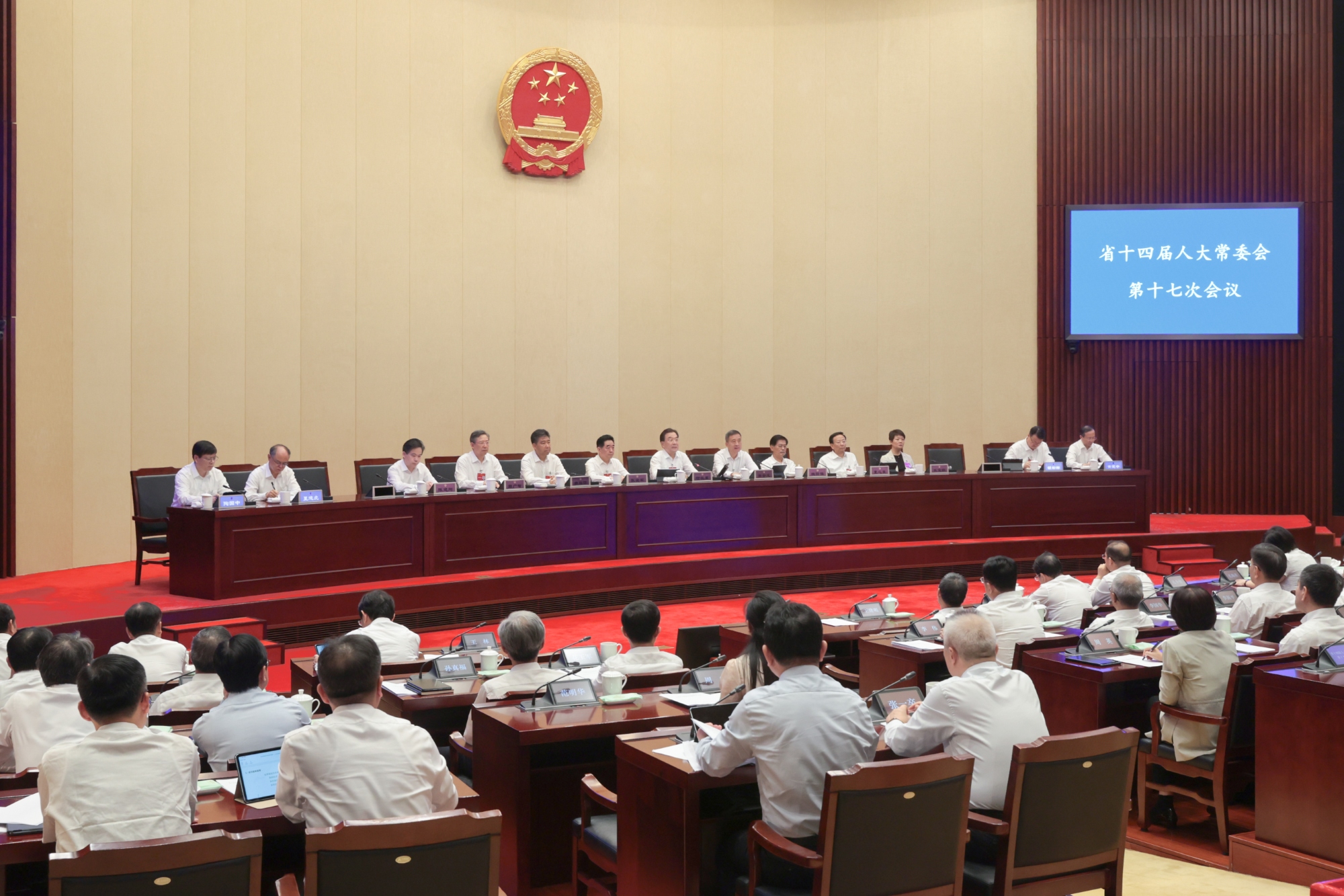 省人大常委会副主任樊金龙、张爱军、魏国强、曲福田、夏心旻、周广智、张宝娟和秘书长陈建刚出席会议。副省长胡彬郴、省法院院长夏道虎,省监委、省检察院负责同志列席会议。