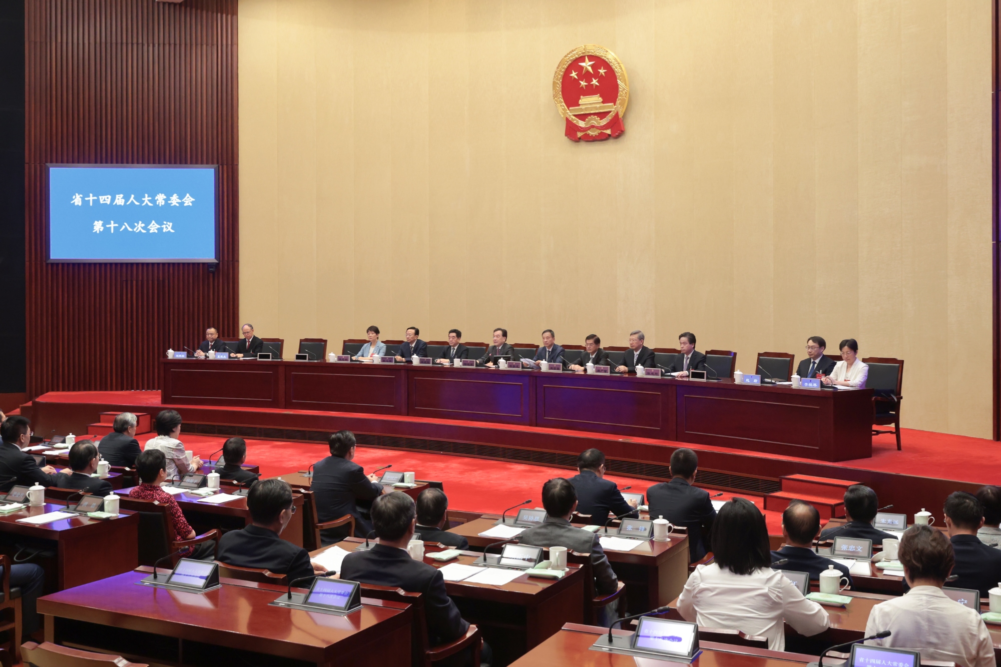 10月9日下午,省十四届人大常委会第十八次会议在南京召开。省委书记、省人大常委会主任信长星主持会议,副主任樊金龙、张爱军、魏国强、夏心旻、周广智、张宝娟和秘书长陈建刚出席会议,副省长赵岩、省法院院长夏道虎、省检察院检察长赵铁实,省监委负责同志列席会议。
