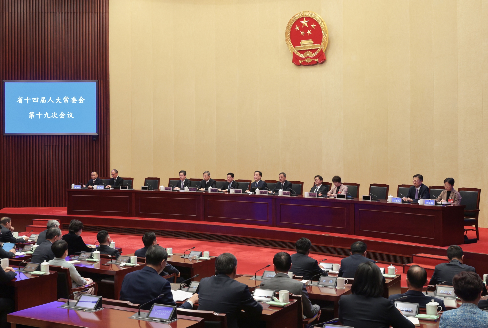 省十四届人大常委会第十九次会议在完成各项议程后,于11月27日下午闭幕。省委书记、省人大常委会主任信长星主持会议并讲话。