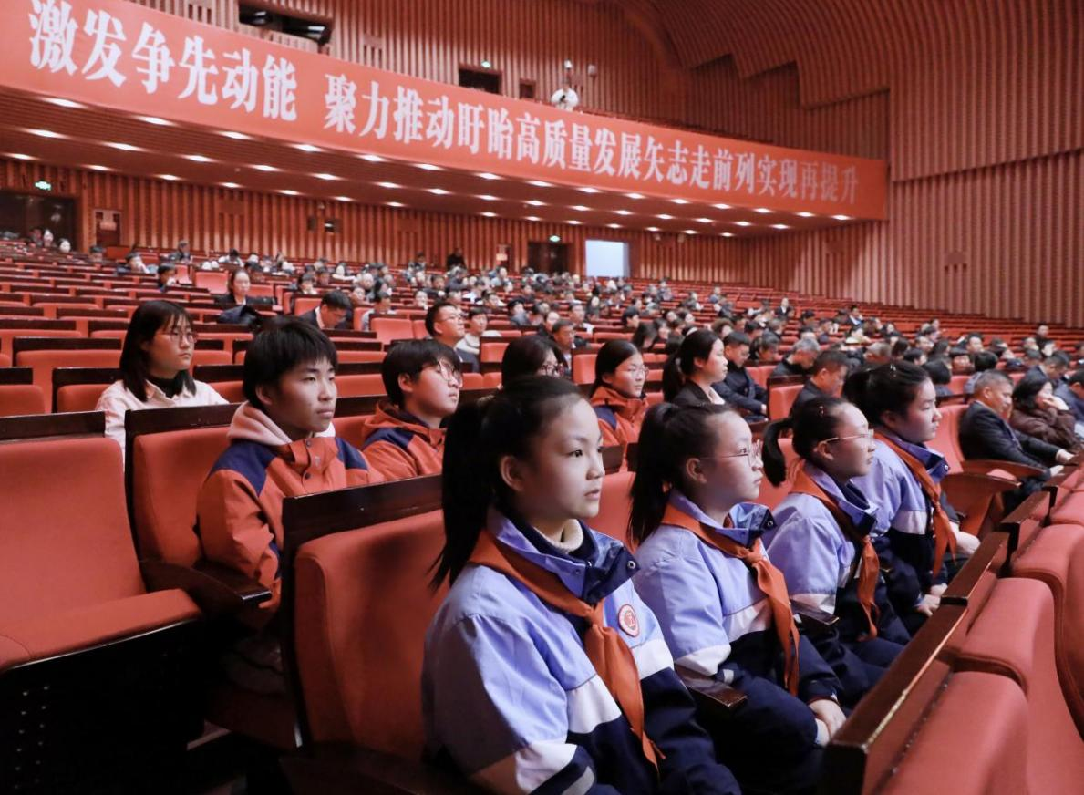1月9日,盱眙县大剧院,262名人大代表正在参加盱眙县第十八届人大四次会议,履行宪法和法律赋予的神圣职责。与以往不同的是,会议现场多了8名中小学生的身影,他们来自盱眙县第二中学和五墩实验小学,这也是盱眙县人大常委会首次邀请中小学生组成“观察团”现场观察“民生实事票决”及大会相关议程。