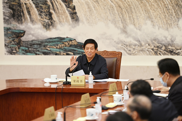 中共全国人大常委会党组10月15日上午举行会议,学习贯彻习近平总书记在中央人大工作会议上的重要讲话和会议精神。中共中央政治局常委、全国人大常委会委员长、党组书记栗战书主持会议并讲话。马增科 摄