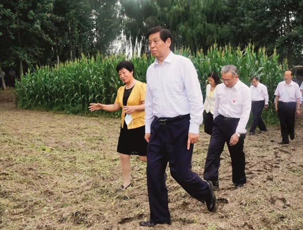 2020年8月25日下午,中共中央政治局常委、全国人大常委会委员长栗战书率队深入山东省济南市历城区苌家庄,实地检查耕地综合利用情况。摄影/新华社记者 刘卫兵