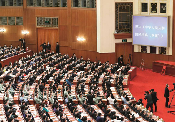 2020年5月28日,十三届全国人民代表大会第三次会议高票表决通过《中华人民共和国民法典》。摄影/新华社记者 丁海涛