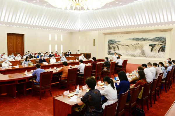 2021年6月9日,栗战书委员长专门围绕“全面学习贯彻习近平总书记重要论述充分发挥人大代表在全过程民主中的作用”这一主题,与列席十三届全国人大常委会第二十九次会议的全国人大代表座谈交流。摄影/马增科