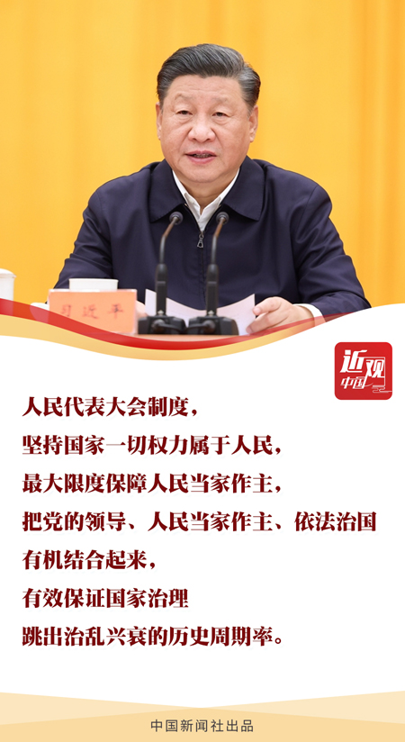 “历史和现实都表明,制度稳则国家稳,制度强则国家强。”作为实现中国全过程人民民主的重要制度载体,习近平指出,人民代表大会制度有效保证国家治理跳出治乱兴衰的历史周期率。要坚持和完善人民代表大会制度,不断发展全过程人民民主。