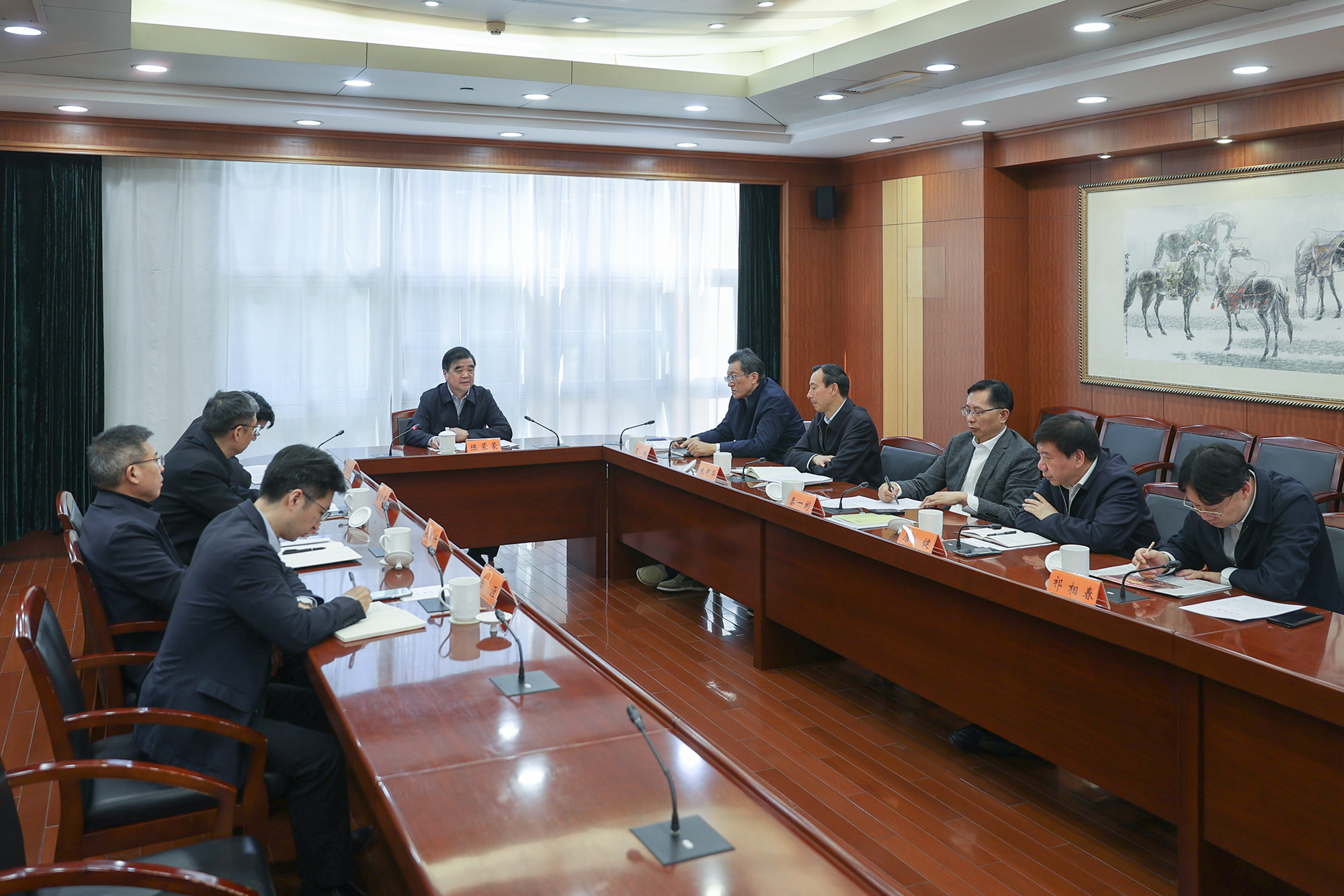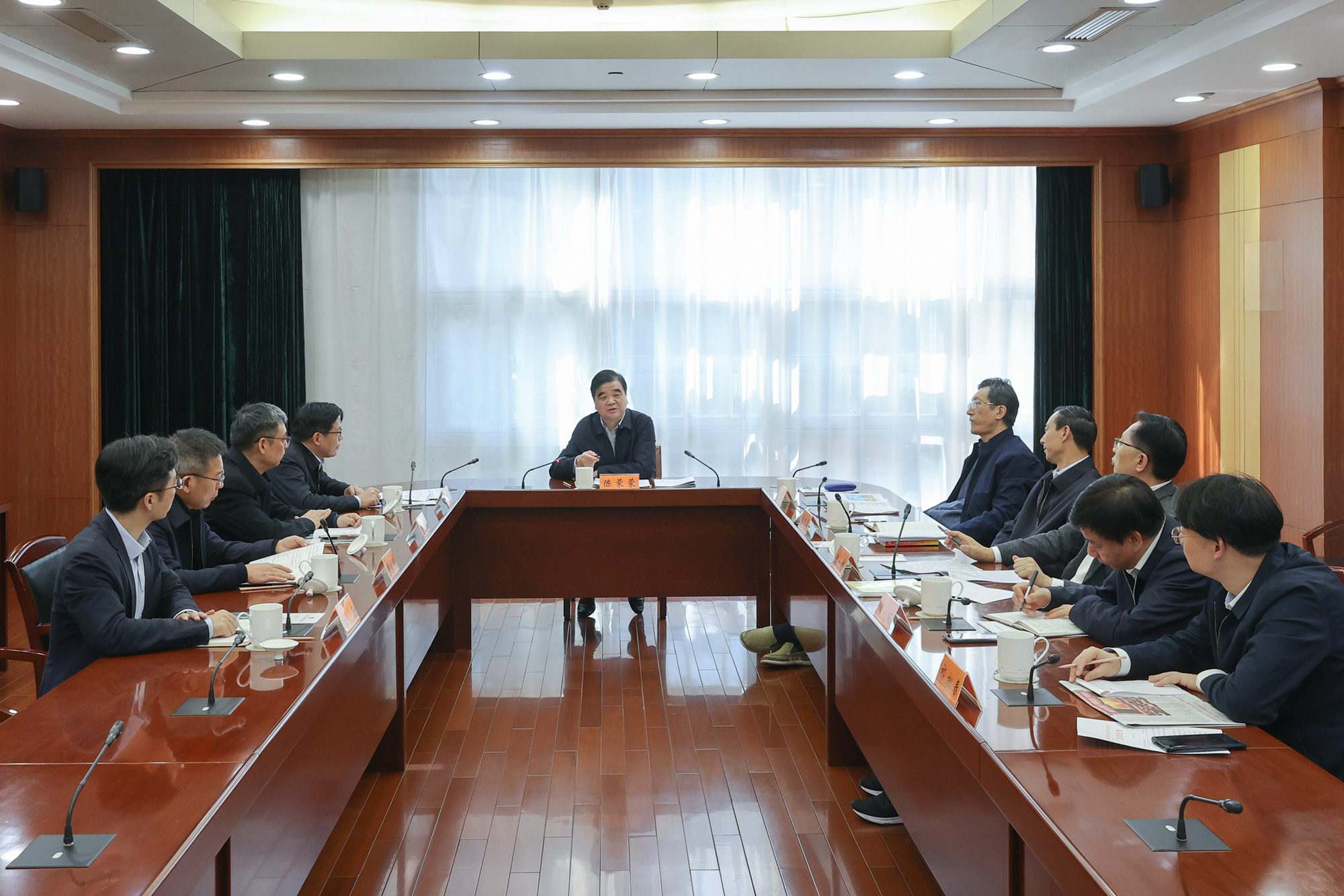 11月19日上午,省人大常委会机关党组召开理论学习中心组学习会,围绕学习党的十九届六中全会精神开展交流研讨,传达省委十三届十一次全会精神,就机关学习贯彻六中全会精神和省委、常委会党组有关会议精神作出部署。省人大常委会秘书长、机关党组书记陈蒙蒙主持会议并讲话。
