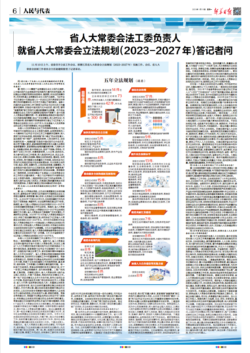【新华日报专版】省人大常委会法工委负责人就省人大常委会立法规划(2023-2027年)答记者问