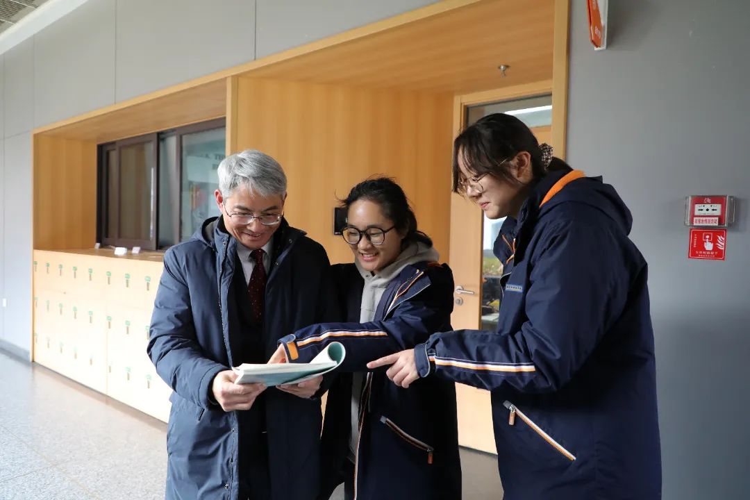 2月25日,初春的南京外国语学校南部新城校区,透着蓬勃生机。红砖墙的教学楼群错落有致,最南端的“存真楼”前,身着深色西装的李鸿彬夹着教案匆匆走过连廊,沿途与捧着书本的学生点头致意。