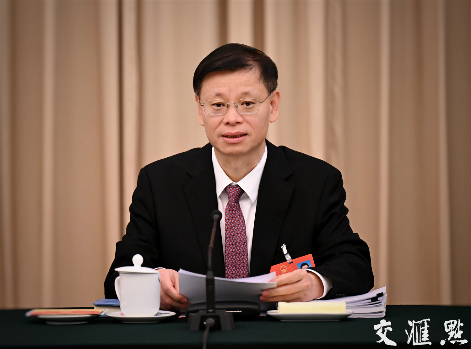 交汇点讯 3月7日上午,人民大会堂西大厅,十四届全国人大三次会议江苏代表团举行全体会议,审议政府工作报告,审查计划报告和草案、预算报告和草案。根据大会安排,本次全体会议向境内外记者开放。全国人大代表、省委书记、省人大常委会主任信长星回答了记者提问。全国人大代表、省委副书记、省长许昆林主持会议。国家卫生健康委主任雷海潮到会听取代表审议意见。