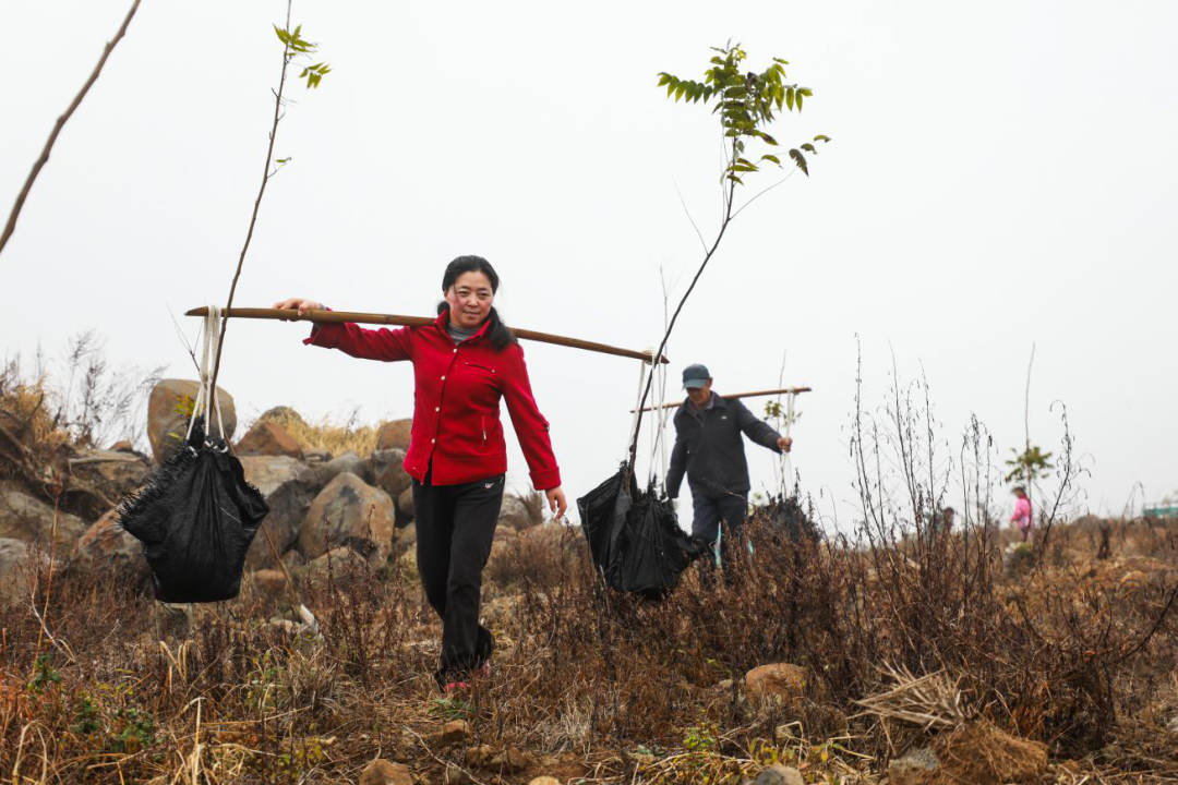 谈及石马山的变迁,李叶红最难忘那段“与荒山较劲”的日子。二十年前,她承包下石马山这片乱石坡,这里土薄水少、没水没电没路,吃水都要靠人扛上山。最艰难的一年遭遇大旱,山上没有任何灌溉设施,刚栽种的树苗濒临枯死。危急时刻,李叶红带头挑起水桶,带领乡亲们日夜奔波在山坡上,一勺一勺给树苗浇水,硬是从干旱的魔爪中“救”回了这片荒山。