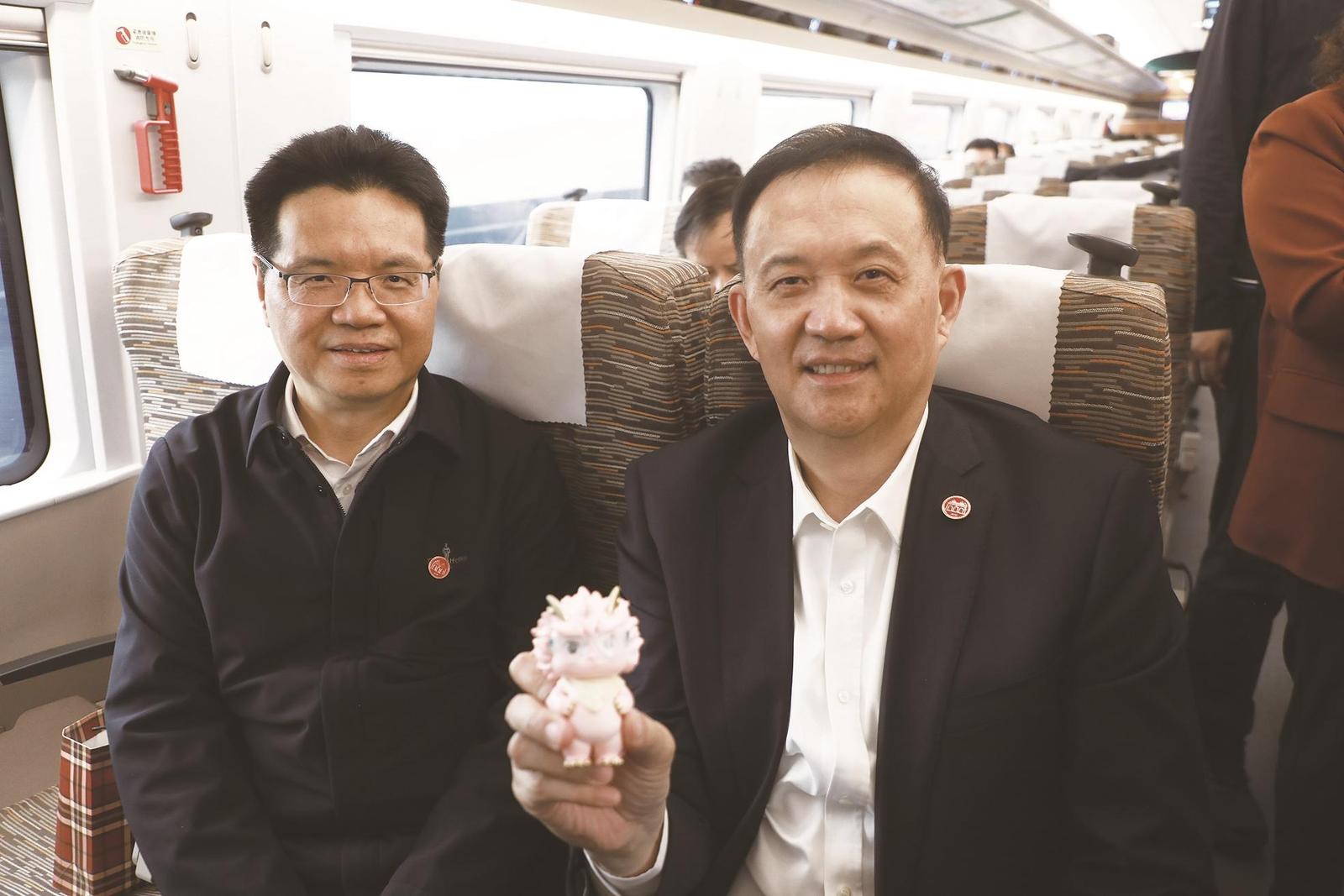 现代快报讯(徐红艳 徐苏宁 龙秋利)3月3日,出席十四届全国人大四次会议的住苏全国人大代表乘坐高铁前往北京。高铁上,全国人大代表,中天钢铁集团有限公司董事局主席、总裁董才平带来的一个3D打印而成的“常宝”吉祥物,成为大家关注的焦点。围绕如何以苏超助力文体旅商融合,代表们讨论热烈。手拿吉祥物“常宝”,全国人大代表、常州市委书记王剑锋向记者们介绍起吉祥物“常宝”形象的由来,以及“输了很多笔画”的常州走红的过程。