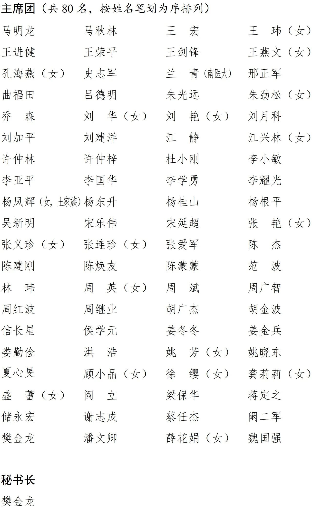 江苏省第十四届人民代表大会第五次会议主席团和秘书长名单