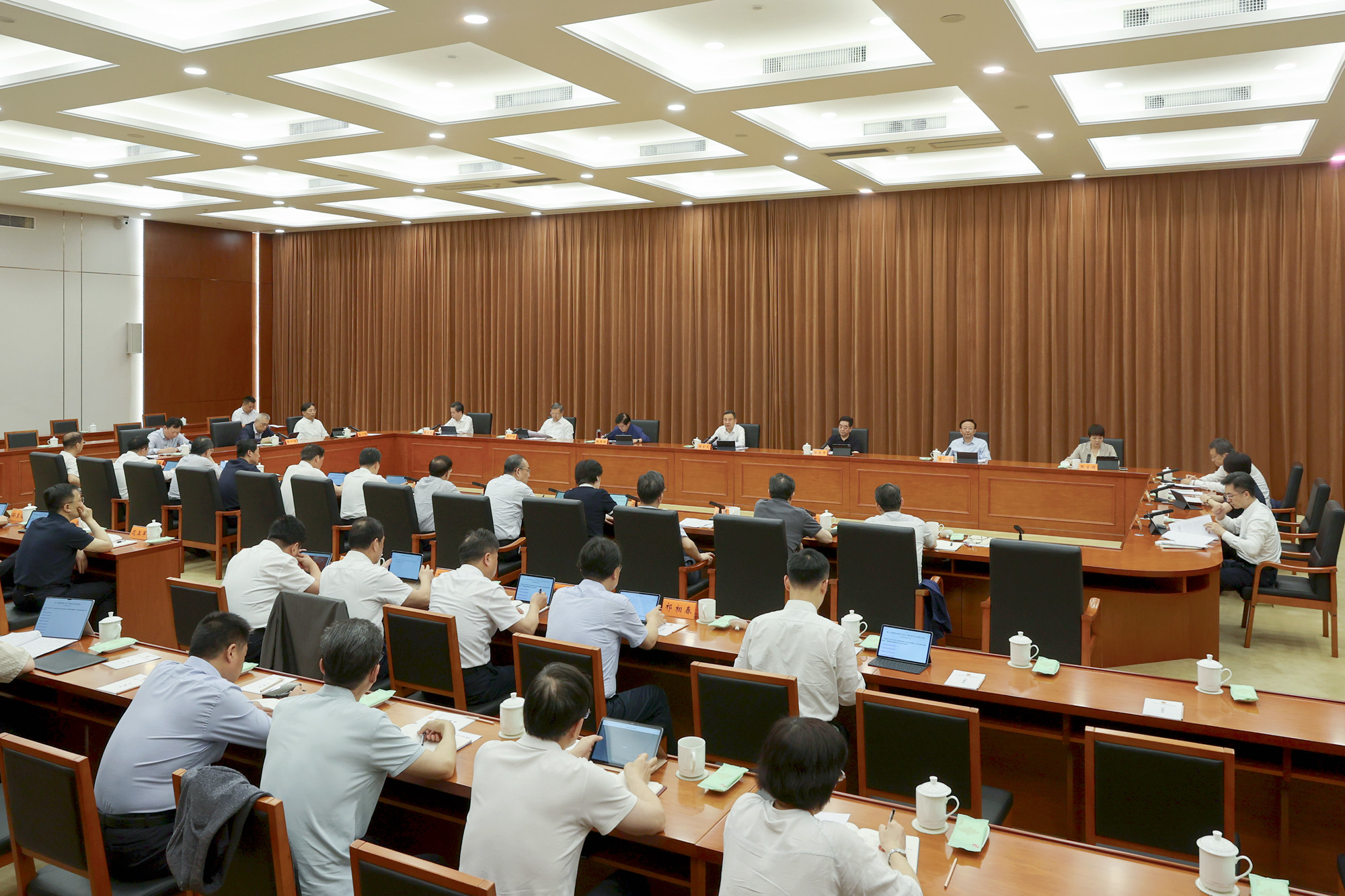 6月9日,省十四届人大常委会举行第四十六次主任会议,受省委书记、省人大常委会主任信长星委托,省人大常委会常务副主任樊金龙主持会议,副主任张爱军、魏国强、夏心旻、周广智、张宝娟和秘书长陈建刚出席会议。