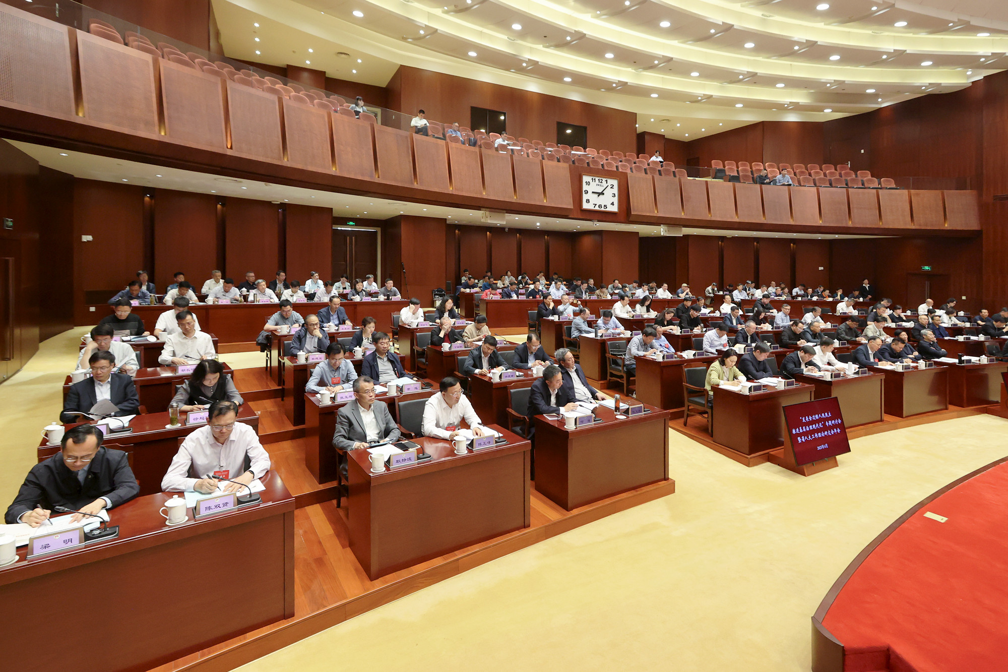 4月29日,“发展全过程人民民主,推进基层治理现代化”专题研讨会在南京召开。省人大常委会常务副主任、党组副书记樊金龙出席会议并讲话,省人大工作理论研究会会长公丕祥主持会议。省人大常委会秘书长陈建刚、省人大工作理论研究会常务副会长吕振霖参加会议。