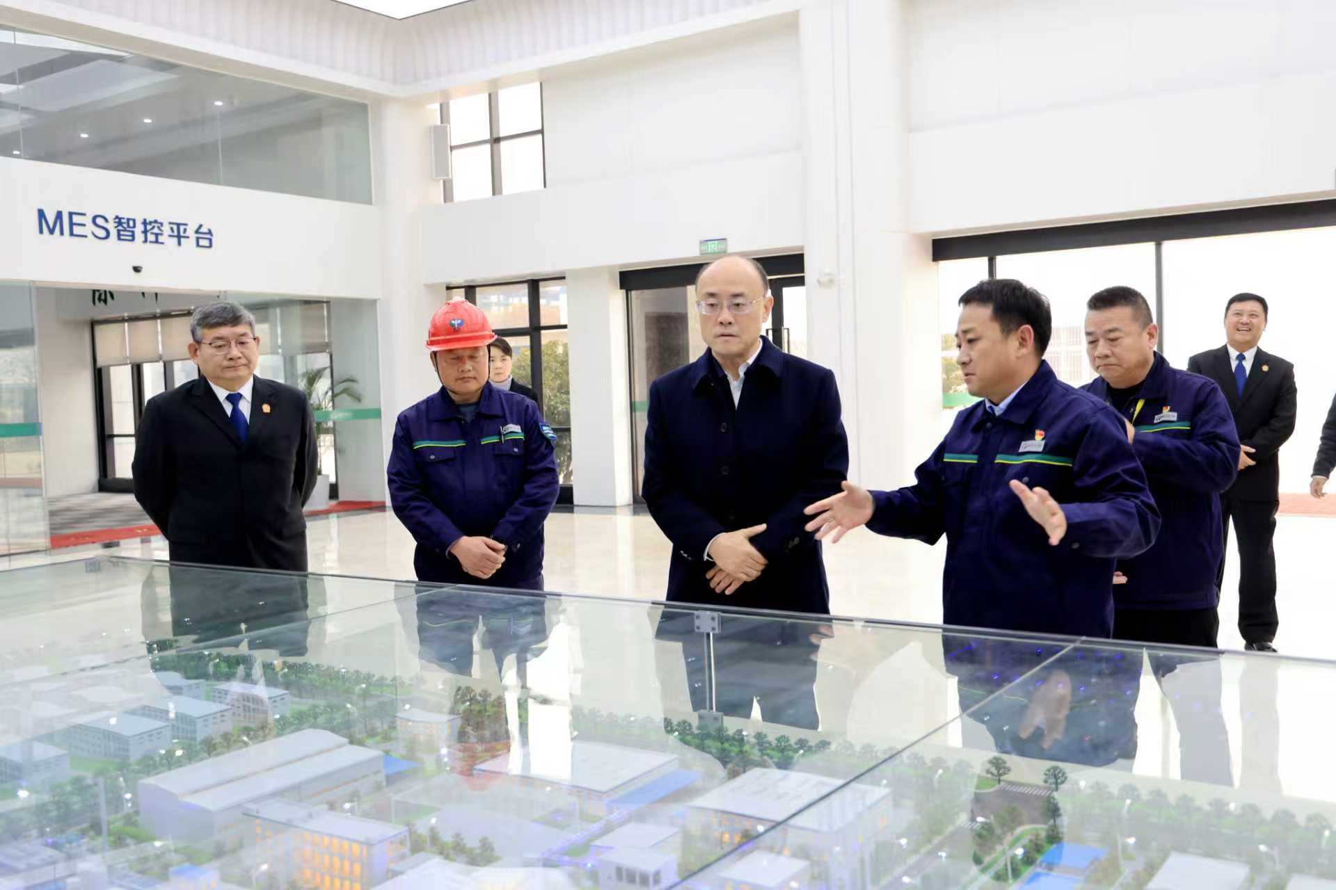 徐州中院党组书记、院长顾韬(左三)走访江苏省人大代表、利民化学有限责任公司公用工程车间副主任姚业纯(左二),并实地调研了企业生产经营和科技创新情况。赵雨秋 摄