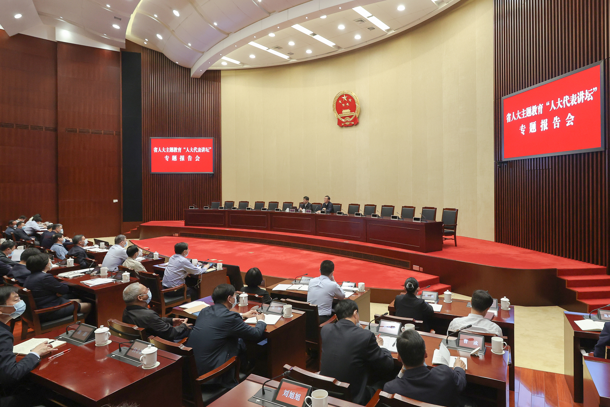 省人大常委会党组成员,机关党组成员,机关全体党员干部职工参加报告会。