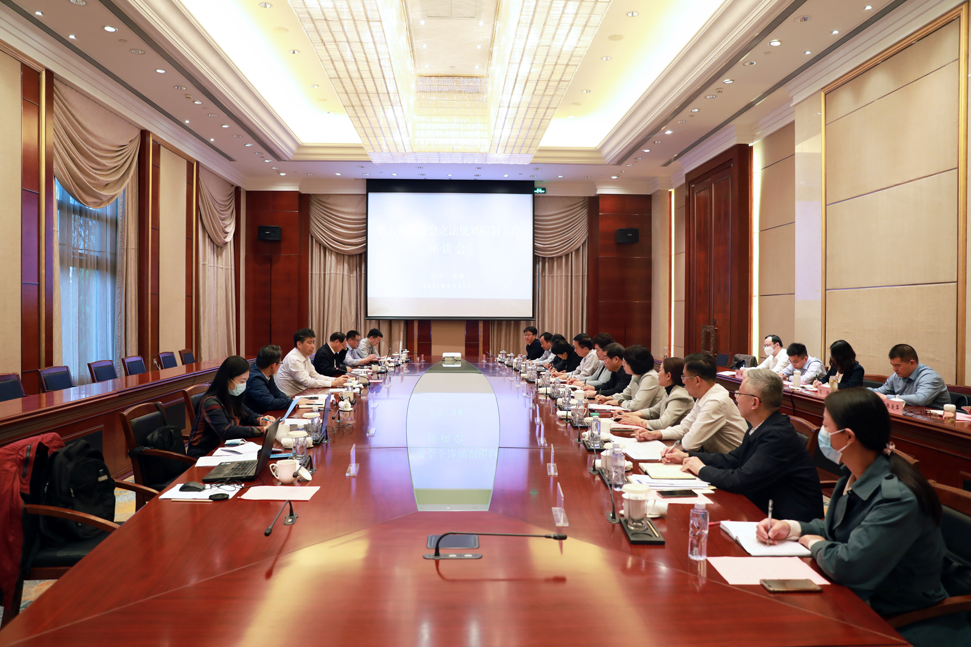 5月17日,省人大常委会副主任曲福田率调研组赴南通,就编制五年立法规划和做好新时代地方人大立法工作开展调研,并召开座谈会听取部分设区市人大常委会的意见建议。