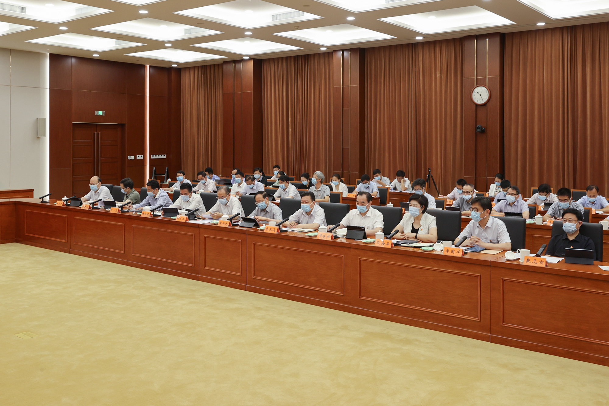 7月14日,省人大常委会召开党组扩大会议暨第十一次主任会议,学习贯彻习近平总书记在中央政治局第六次集体学习时的重要讲话、对党的建设和组织工作作出的重要指示精神,传达学习十四届全国人大常委会第三次会议精神,研究落实省委部署要求。受省委书记、省人大常委会主任、党组书记信长星委托,省人大常委会常务副主任、党组副书记樊金龙主持会议,副主任魏国强、周广智和秘书长陈建刚参加会议。