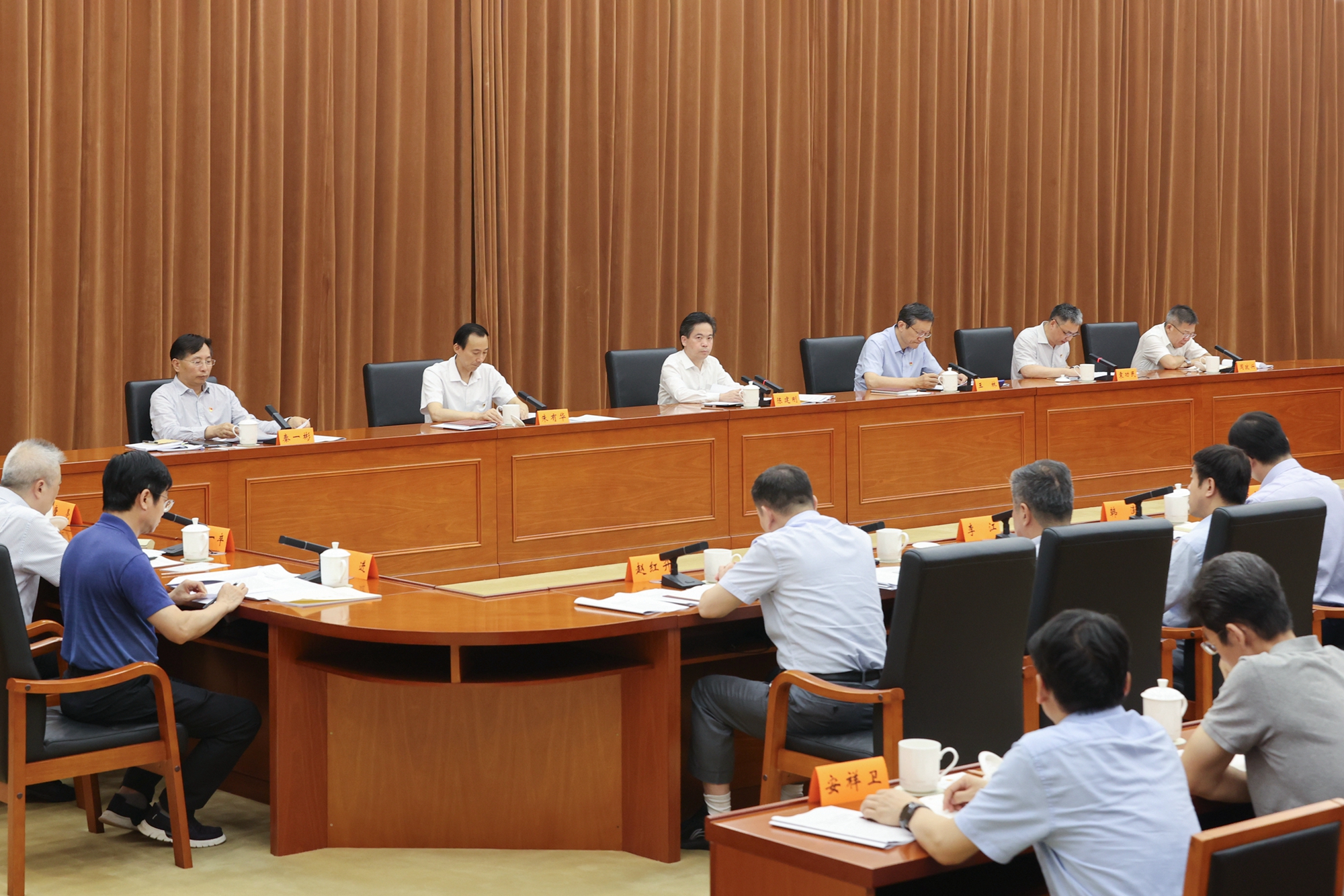7月24日下午,省人大常委会机关党组理论学习中心组召开学习会,集中围绕学习贯彻习近平总书记关于中国式现代化的重要论述,特别是习近平总书记考察江苏重要讲话重要指示精神进行研讨交流,深化开展“牢记嘱托、感恩奋进、走在前列”大讨论。省人大常委会秘书长、机关党组书记陈建刚主持会议并讲话。