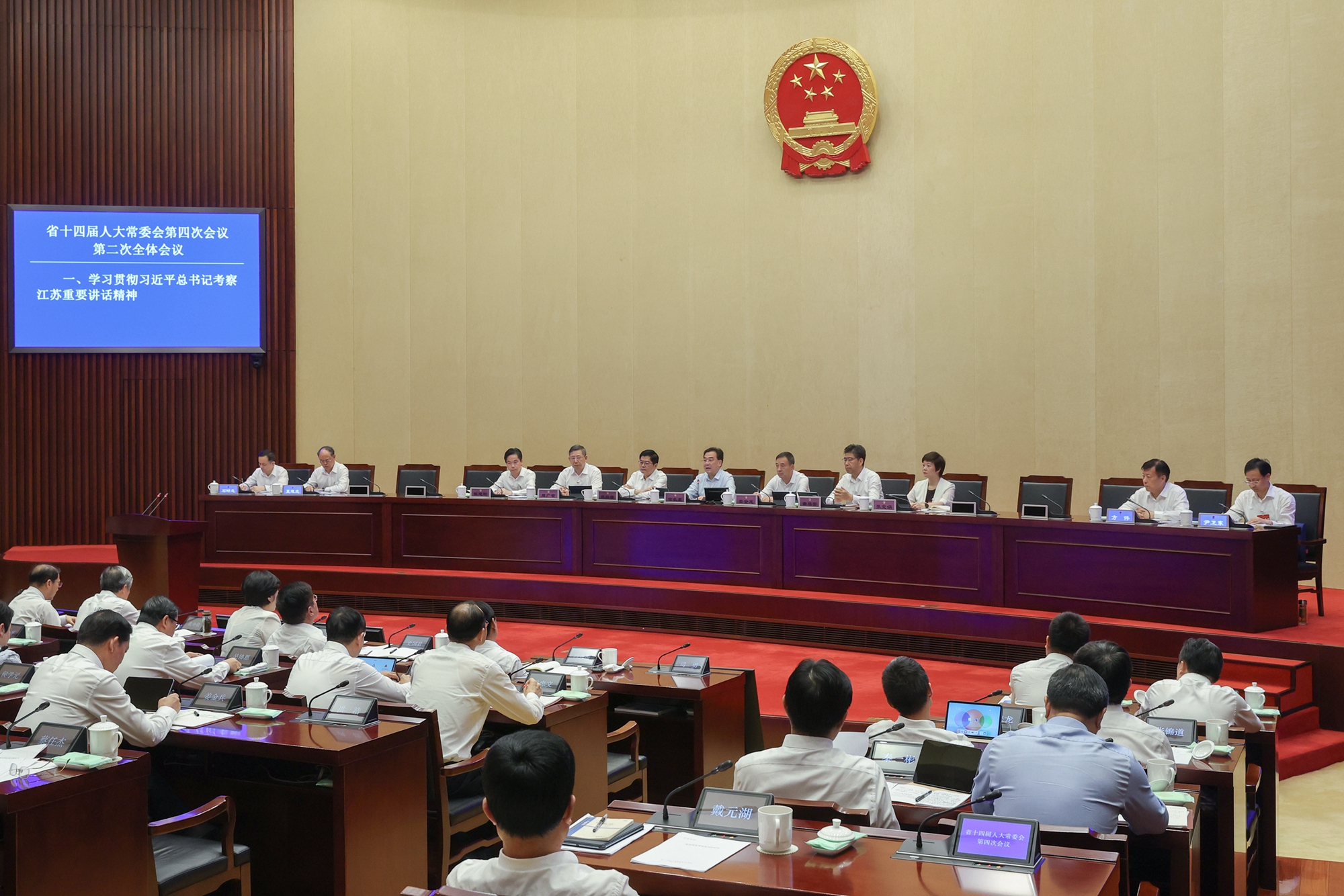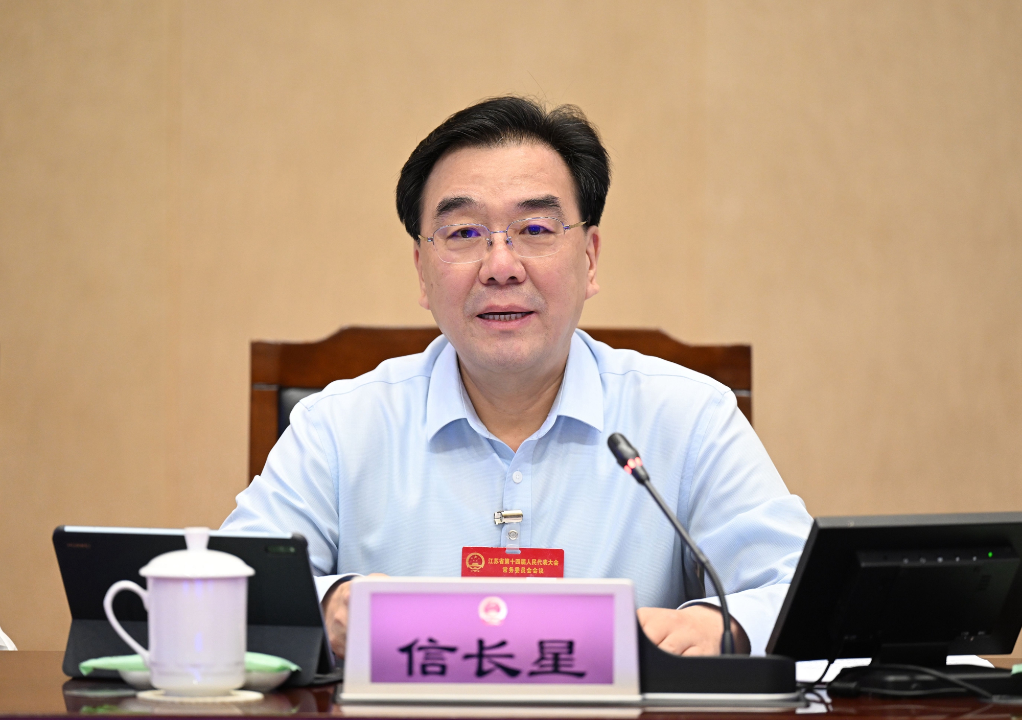 7月25日,省十四届人大常委会第四次会议在南京开幕。省委书记、省人大常委会主任信长星主持会议。