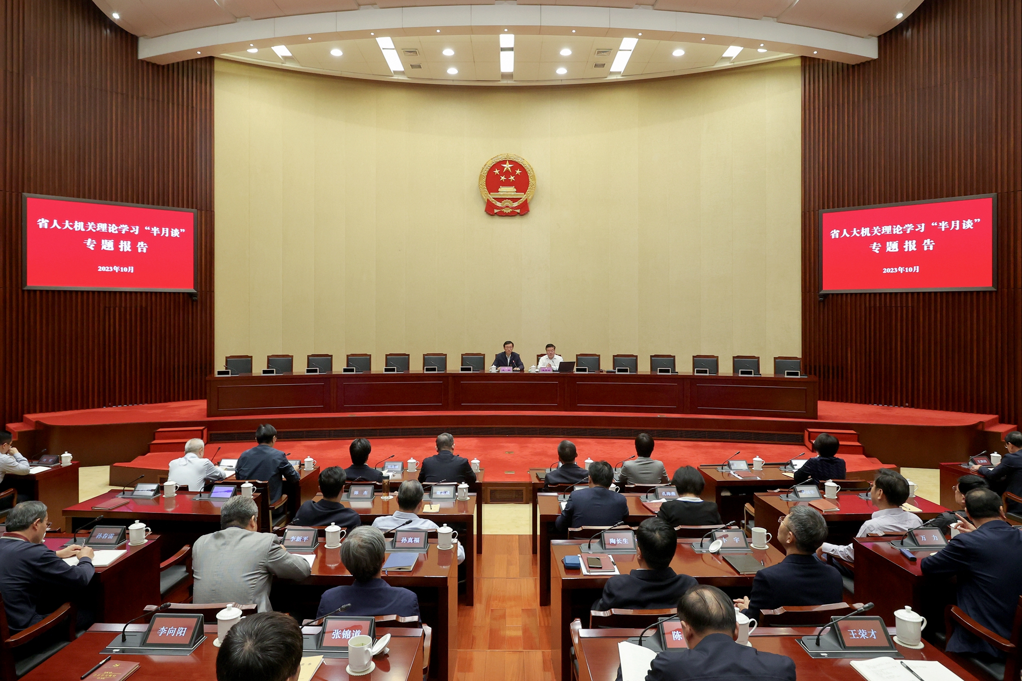 为巩固主题教育“人大代表讲坛”以讲促学、以学促干特色做法,省人大机关建立理论学习“半月谈”机制,10月30日下午,省人大常委会举办首场机关理论学习“半月谈”专题报告会。省人大常委会副秘书长、办公厅主任王林主持,省人大法制委副主任委员史国君,省人大监察司法委副主任委员陶长生分别作专题报告。