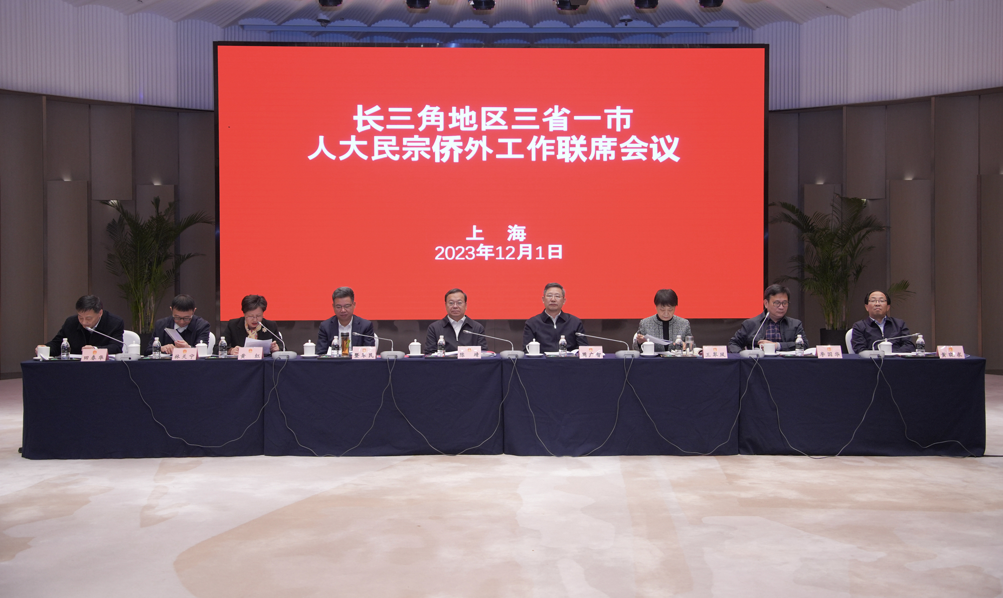 长三角地区三省一市人大民宗侨外工作2023年联席会议于11月30日至12月2日在上海临港新片区召开,上海市人大常委会副主任陈靖、江苏省人大常委会副主任周广智、浙江省人大常委会副主任暨军民、安徽省人大常委会副主任王翠凤出席会议并讲话。
