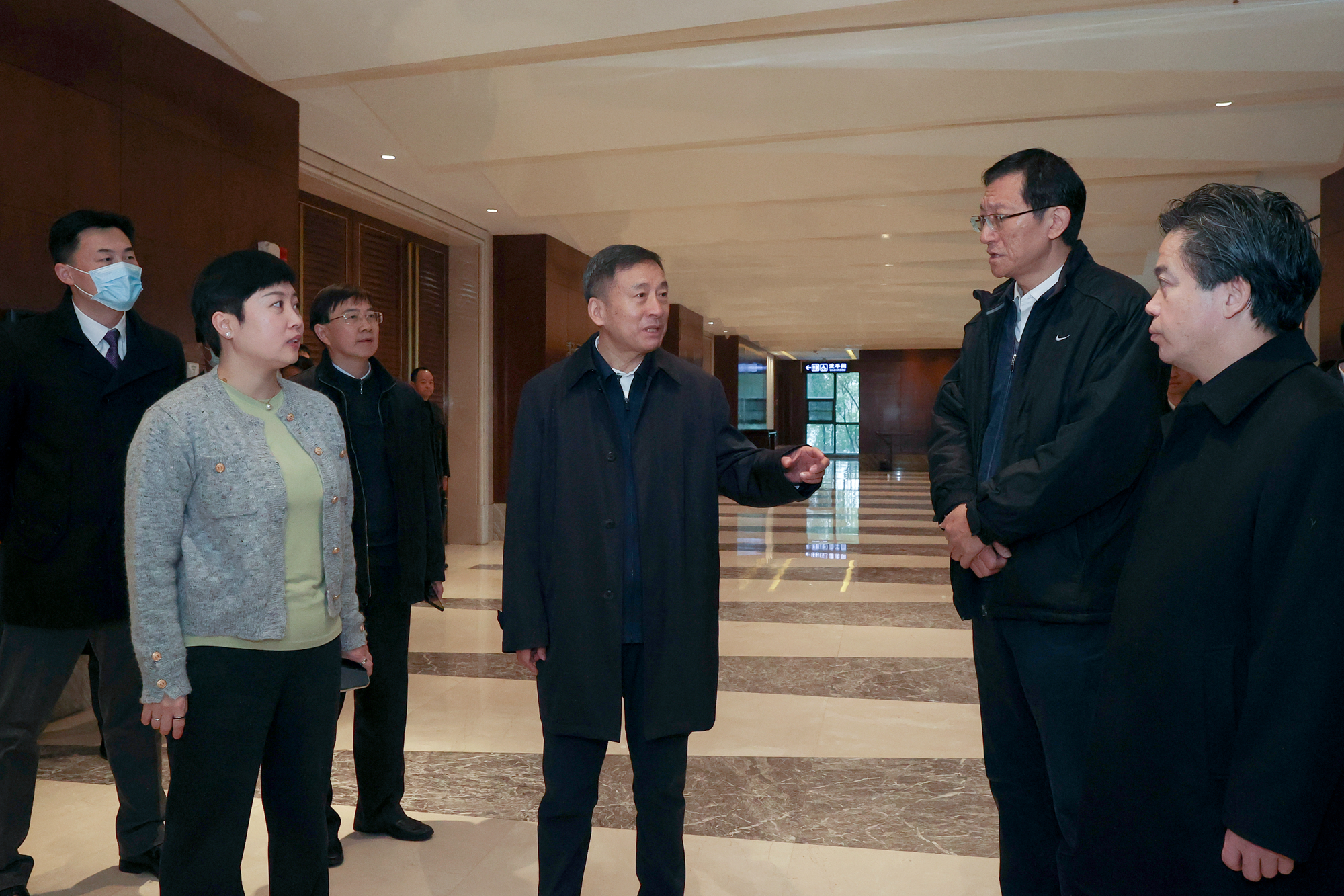 大会副秘书长建议人选,各工作组组长、副组长,各联络站站长,江苏大会堂、各住地宾馆负责人等参加协调小组会议。省人大机关、省卫健委、省市场监督管理局、省公安厅特勤局有关负责同志陪同检查。