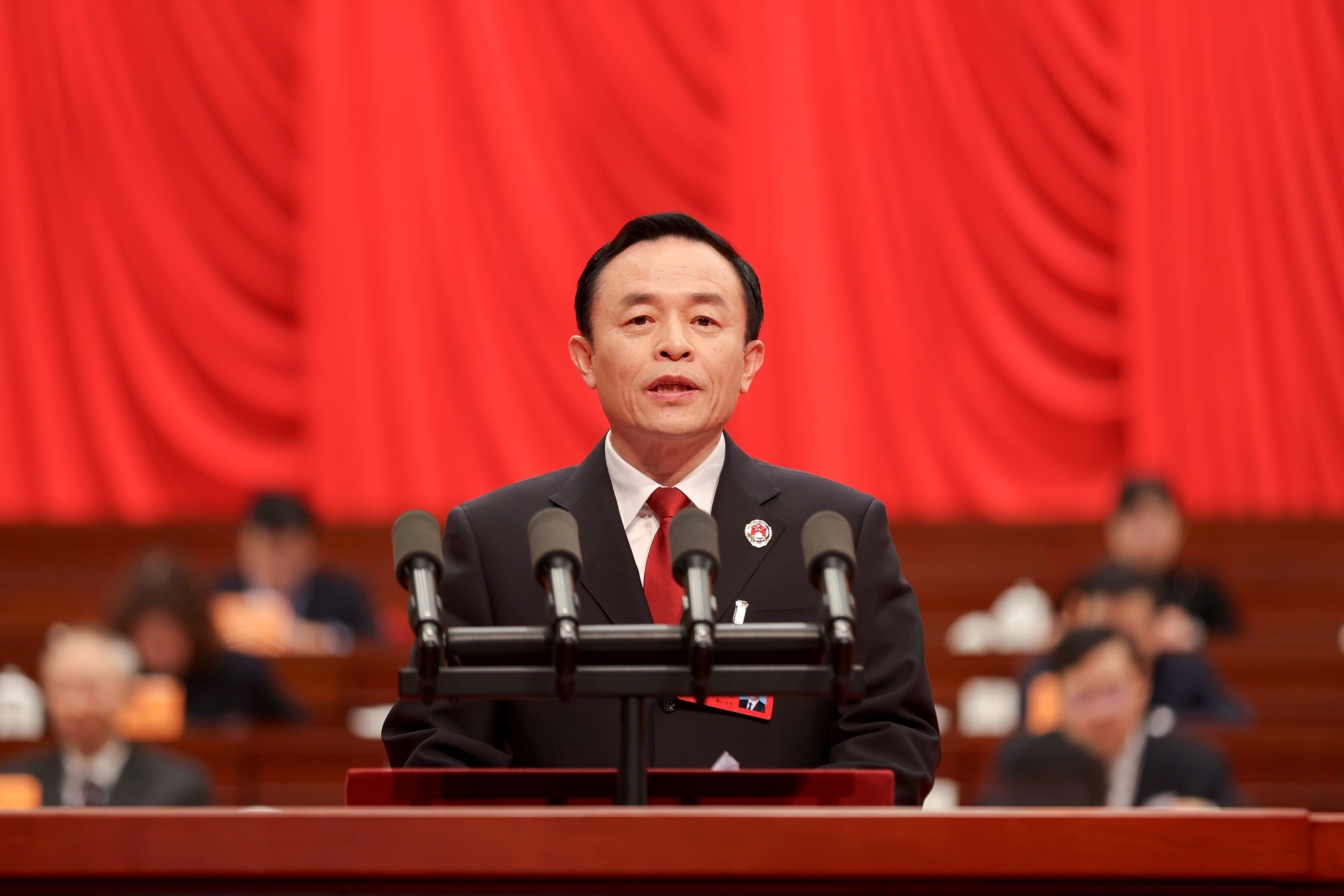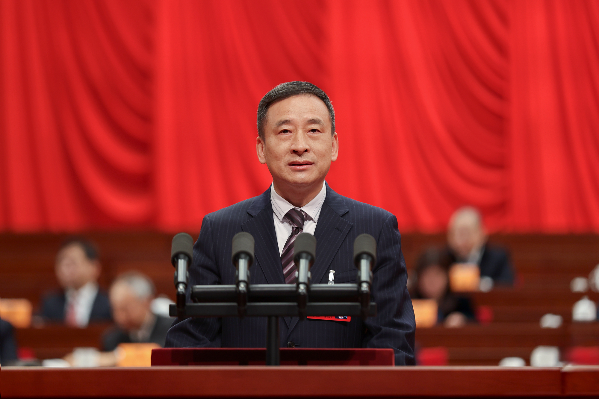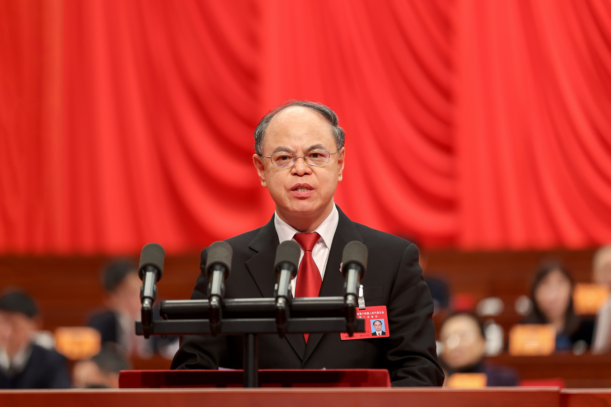受信长星委托,省人大常委会常务副主任樊金龙代表省人大常委会作工作报告。
