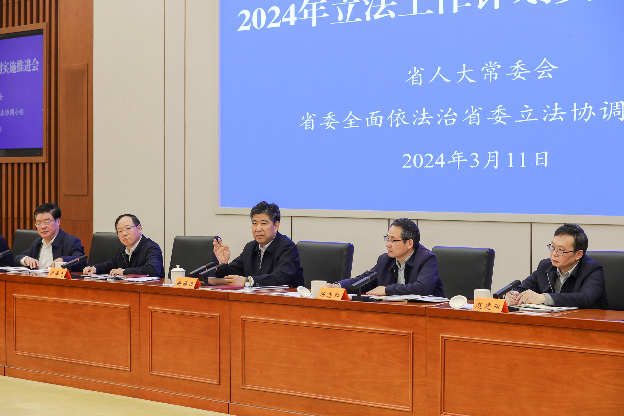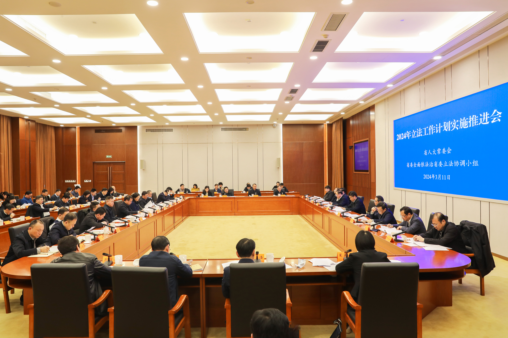 3月11日上午,省人大常委会和省委全面依法治省委员会立法协调小组联合召开2024年立法工作计划实施推进会,推动落实省委审定的省人大常委会2024年立法工作计划。省人大常委会副主任、省委全面依法治省委员会立法协调小组组长曲福田出席会议并讲话。