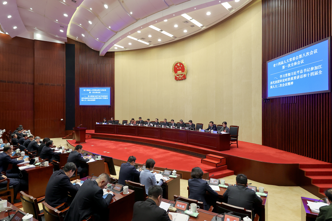 3月26日,省十四届人大常委会第八次会议在南京开幕。省委书记、省人大常委会主任信长星主持第一次全体会议并讲话。