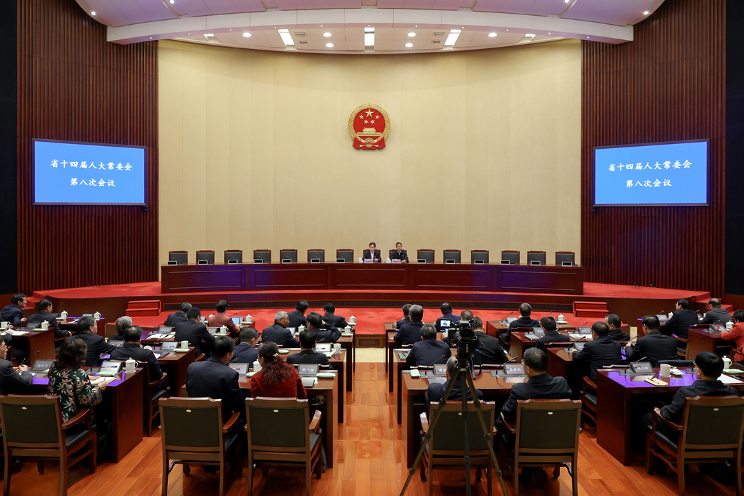 3月27日上午,省十四届人大常委会第八次会议举办专题讲座,省人大常委会秘书长陈建刚主持。省生态环境厅厅长蒋巍、省科技厅副厅长赵建国分别作专题报告。