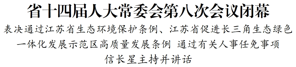 会议表决通过了《江苏省生态环境保护条例》《江苏省促进长三角生态绿色一体化发展示范区高质量发展条例》,批准了南京等设区市报批的21件法规和法规性决定。