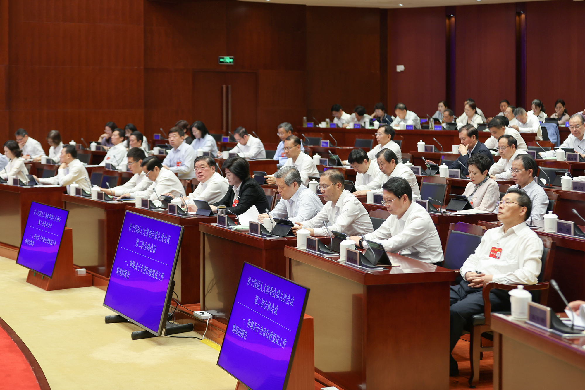 5月28日上午,省十四届人大常委会第九次会议举行第二次全体会议,受省委书记、省人大常委会主任信长星委托,省人大常委会常务副主任樊金龙主持会议,副主任张爱军、曲福田、张宝娟和秘书长陈建刚出席会议。副省长方伟、省法院院长夏道虎、省检察院检察长石时态和省监委负责同志列席会议。