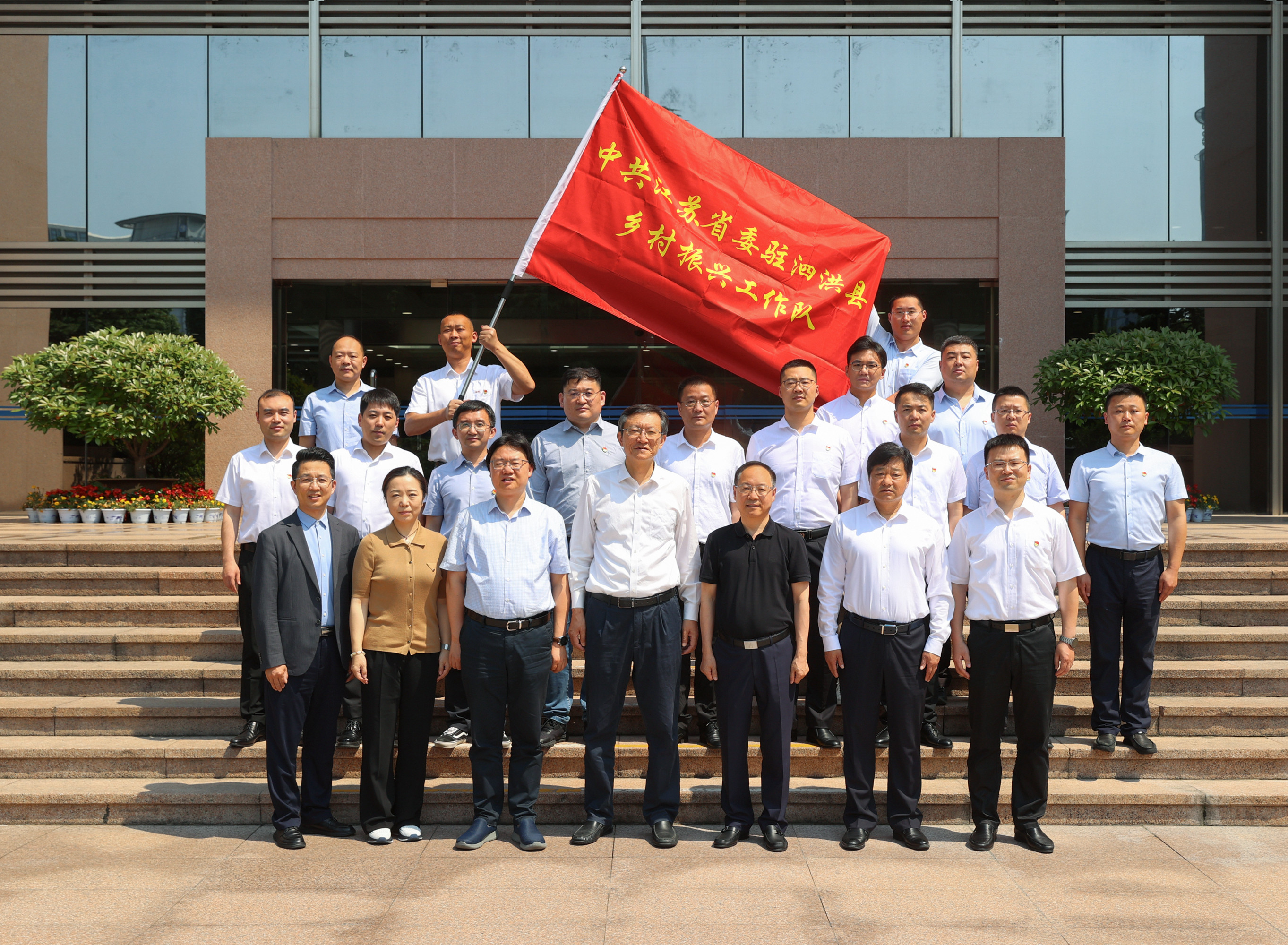 6月3日下午,省委驻泗洪县乡村振兴工作队集中出征,省人大机关有关负责同志为队员们送行。