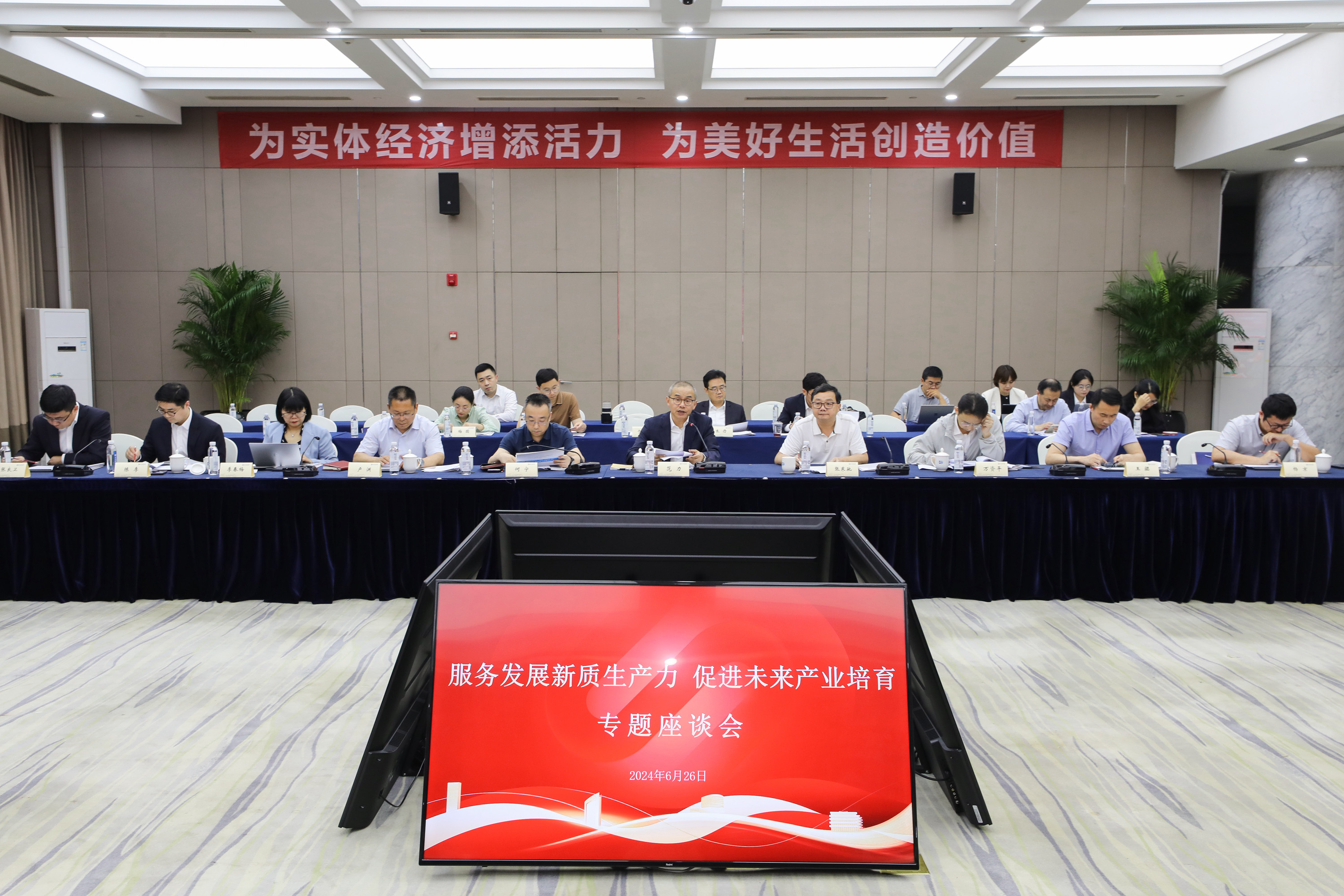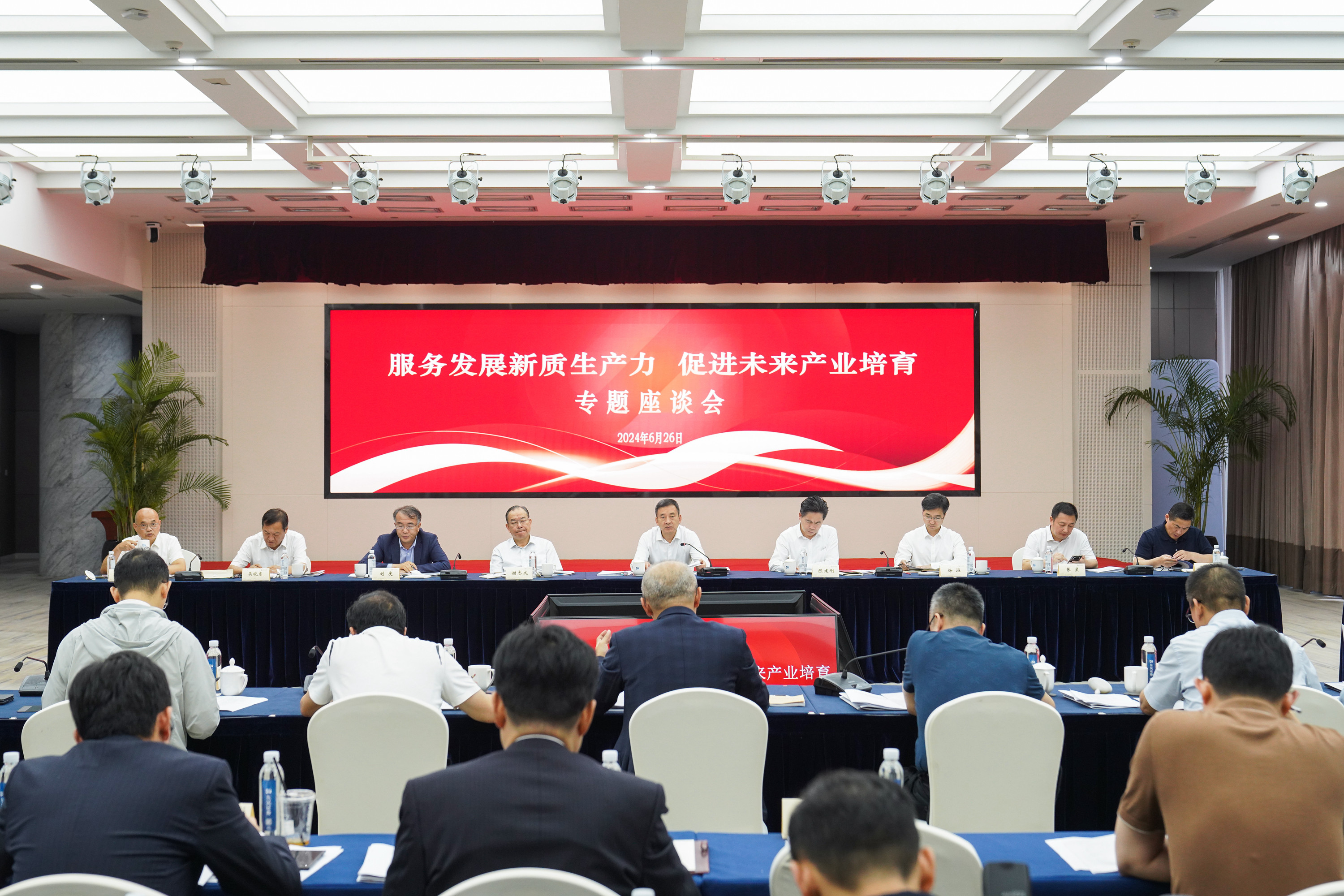 6月26日下午,省人大常委会常务副主任、党组副书记樊金龙在苏州围绕促进未来产业培育主持召开座谈会,秘书长陈建刚参加。