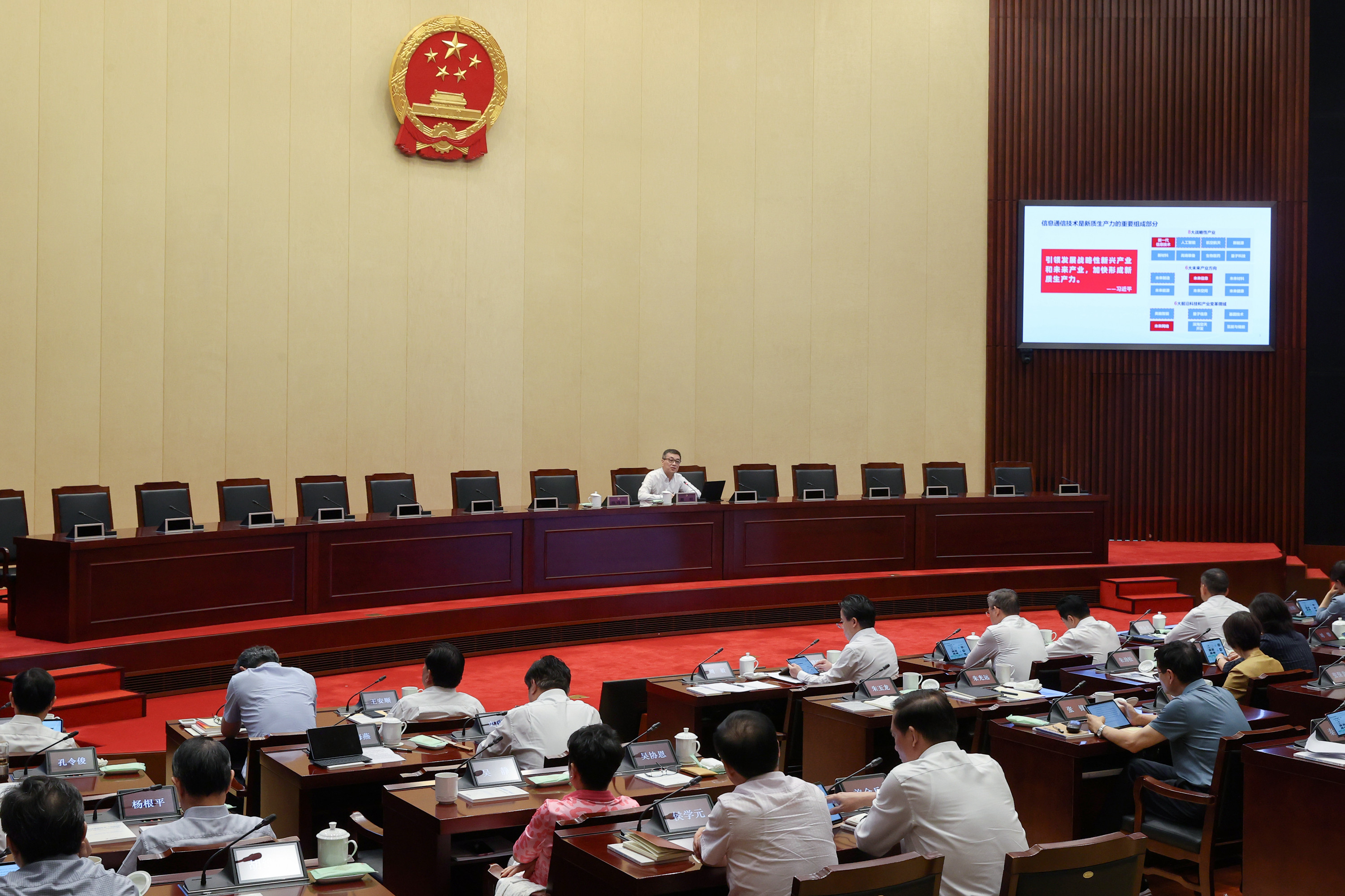 7月31日上午,省十四届人大常委会第十次会议举办专题讲座,省人大常委会秘书长陈建刚主持。省产业技术研究院院长刘庆、省人大财经委副主任委员周毅分别作专题报告。