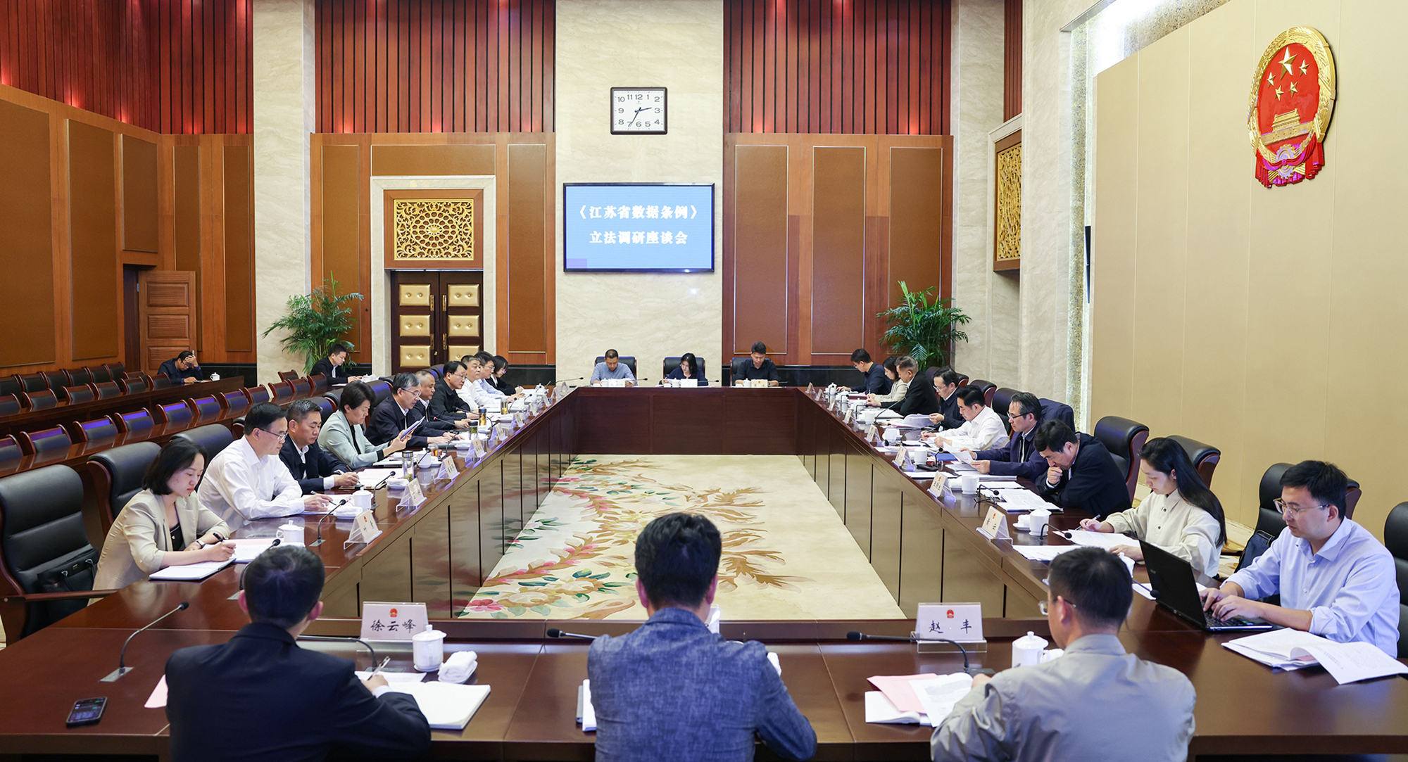 张爱军对两地的数字经济发展、数据治理工作予以肯定。他指出,制定好《江苏省数据条例》,是贯彻党的二十届三中全会精神、落实习近平总书记关于构建以数据为关键要素的数字经济重要指示精神的有力举措,是推动江苏聚力打造“数实融合第一省”的重要保障。他强调,数据治理要统筹发展与安全,以发展促安全、以安全保发展,做到发展和安全并重;确立基础制度,着重研究探索数据要素流通和交易制度、数据要素收益分配制度、数据治理制度,推动数据要素价值充分实现;坚持科学立法民主立法依法立法,加强调查研究、科学论证,广泛汇集民意、凝聚共识,提高立法质量,确保法规立得住、行得通、能管用。