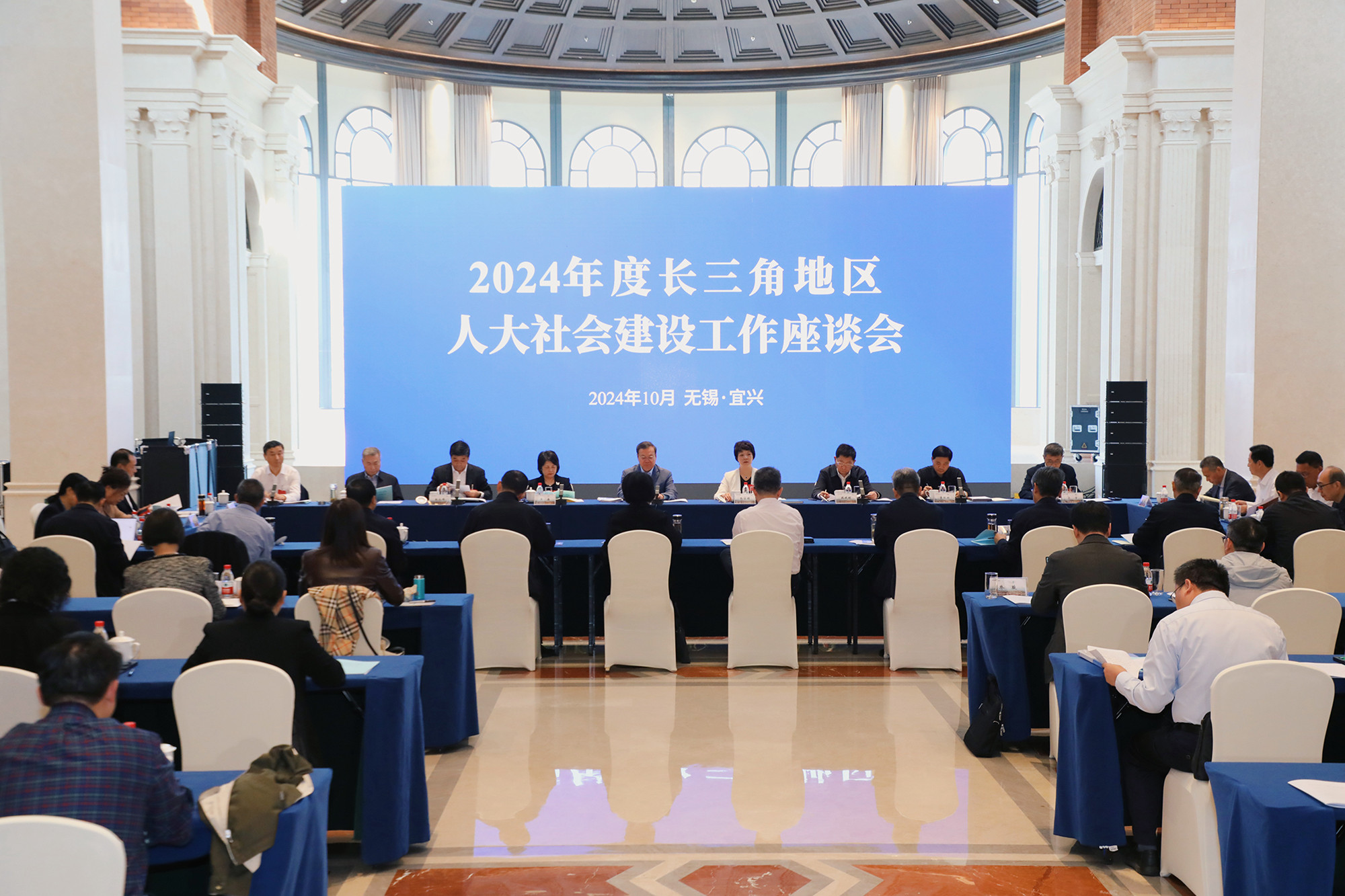 10月10日至11日,2024年度长三角地区人大社会建设工作座谈会在宜兴召开,聚焦养老服务体系建设和完善工作进行交流研讨。上海市人大常委会副主任陈靖、江苏省人大常委会副主任张宝娟、浙江省人大常委会副主任吴晶、安徽省人大常委会副主任魏晓明出席会议并讲话。
