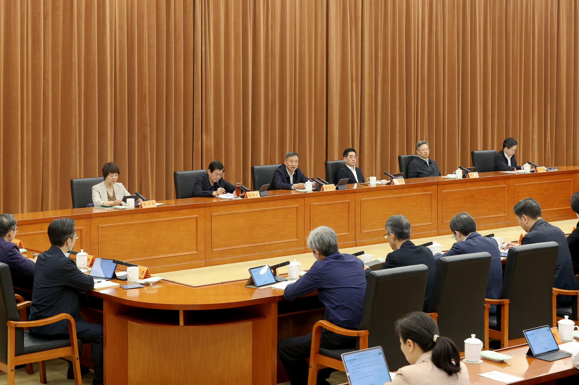 10月12日,省人大常委会召开党组扩大会议暨第三十五次主任会议,认真学习贯彻习近平总书记在中央政治局会议、全国教育大会、全面推动黄河流域生态保护和高质量发展座谈会、国家勋章和国家荣誉称号颁授仪式上的重要讲话精神等,学习贯彻习近平总书记关于意识形态工作的重要论述,研究落实省委部署要求。受省委书记、省人大常委会主任、党组书记信长星委托,省人大常委会常务副主任、党组副书记樊金龙主持会议,副主任、党组副书记张爱军,副主任魏国强、周广智、张宝娟和秘书长陈建刚出席会议。