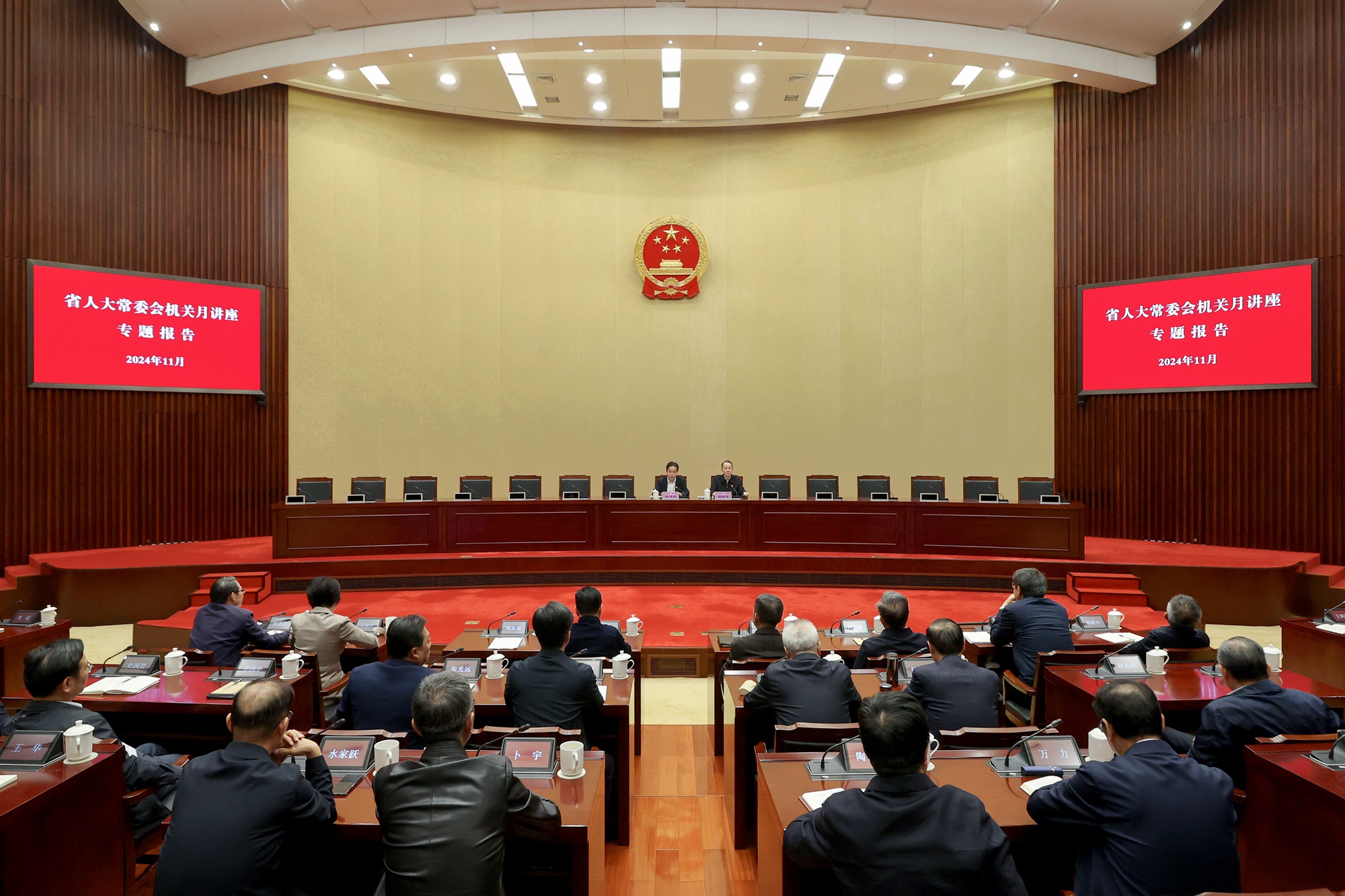 11月4日下午,省人大常委会举办月讲座专题报告会,省人大常委会代表工委主任杨根平作专题报告。省人大常委会秘书长陈建刚主持。