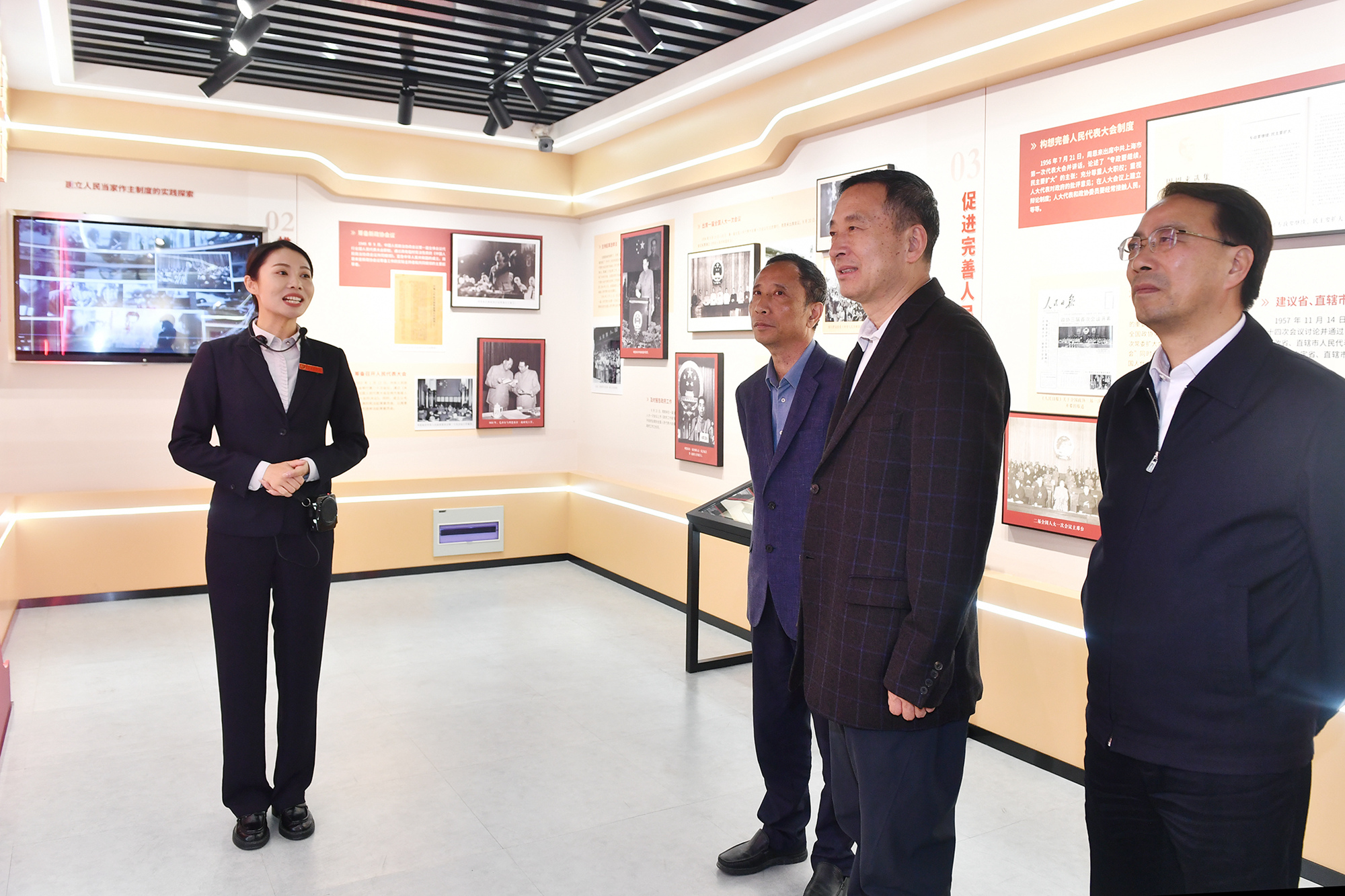 樊金龙一行参观“周恩来与人民代表大会制度”主题展,考察淮阴区刘河社区全过程人民民主实践基地,与基层人大干部交流,了解基层人大工作情况。
