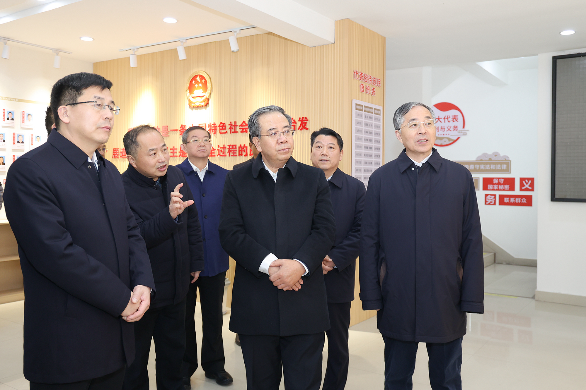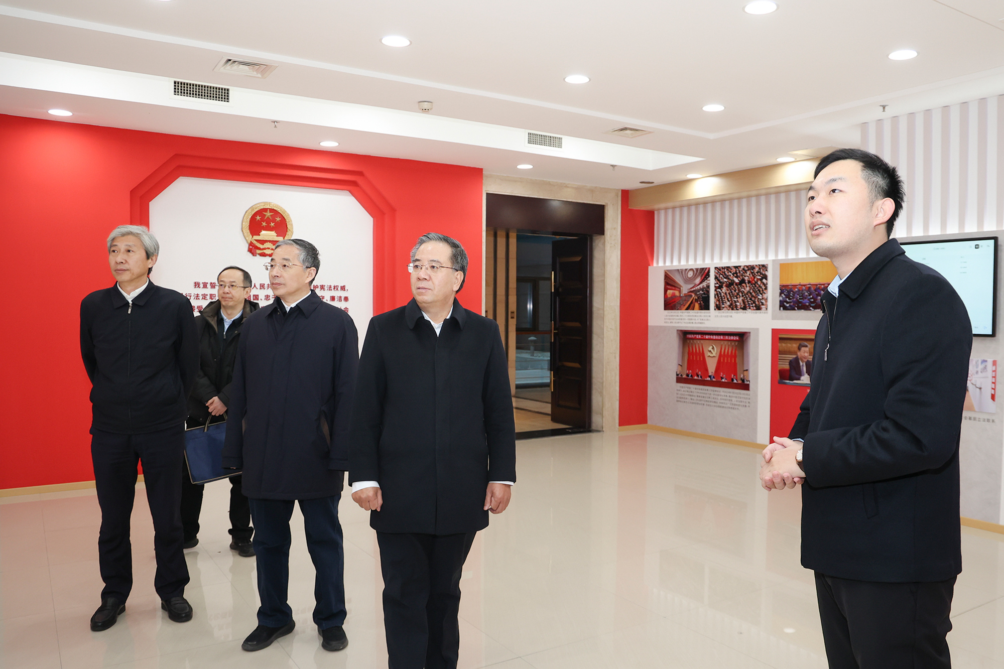 座谈会前,调研组参观了泰州市人大常委会宣传人民代表大会制度展。