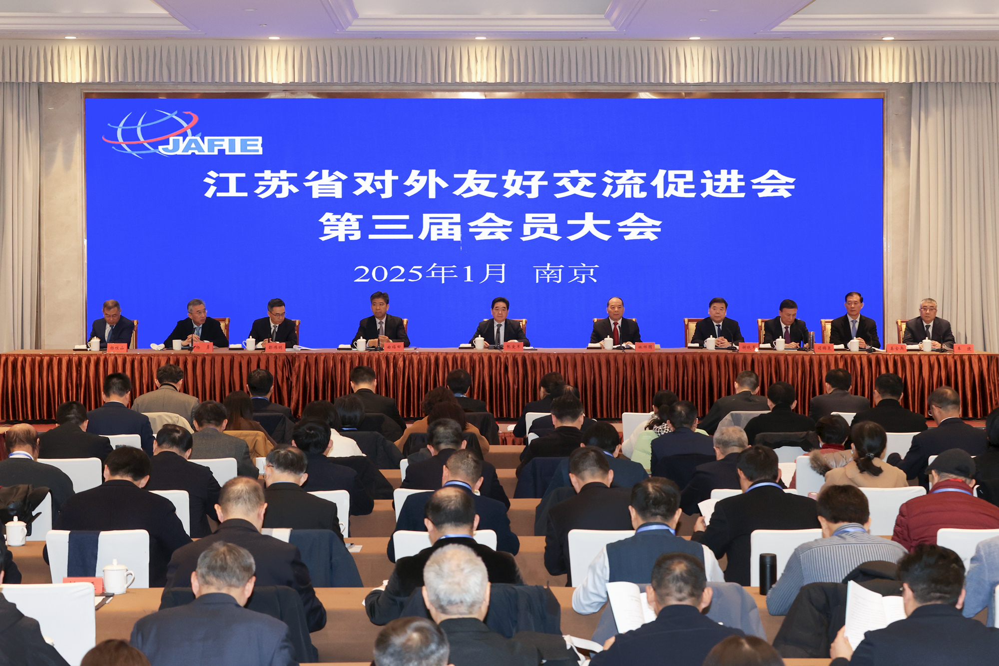 1月16日,江苏省对外友好交流促进会举行第三届会员大会暨换届大会。省人大常委会副主任、党组副书记张爱军出席会议并讲话。省人大常委会副主任曲福田当选省友促会第三届理事会会长。