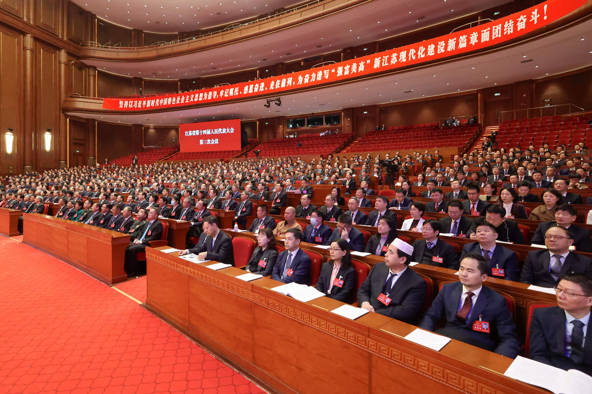 1月19日上午,江苏省第十四届人民代表大会第三次会议在江苏大会堂举行预备会议,选举产生了大会主席团和秘书长,表决通过了大会议程。