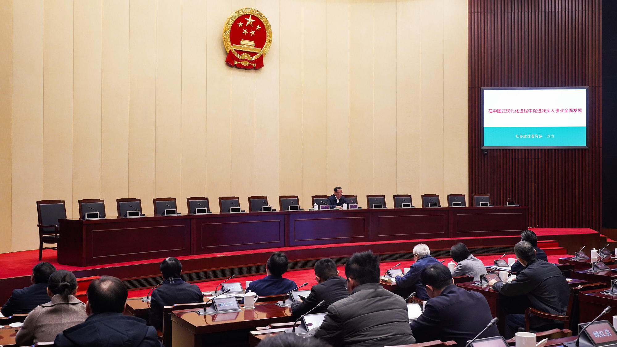万力的报告聚焦“在中国式现代化进程中促进残疾人事业全面发展”,系统阐述了习近平总书记关于残疾人事业重要论述,详细分析了“残疾人是一个什么样的特殊群体”“如何认识和看待残疾人群体”等问题,从权益保障与福利促进相结合、劳动福利与社会福利相结合、家庭照顾与社会化服务相结合、集中安置与分散融合相结合、能力建设与环境支持相结合等方面,深入讲解了残疾人事业现代化的实现路径,并就强化残疾人事业法治建设提出建议。