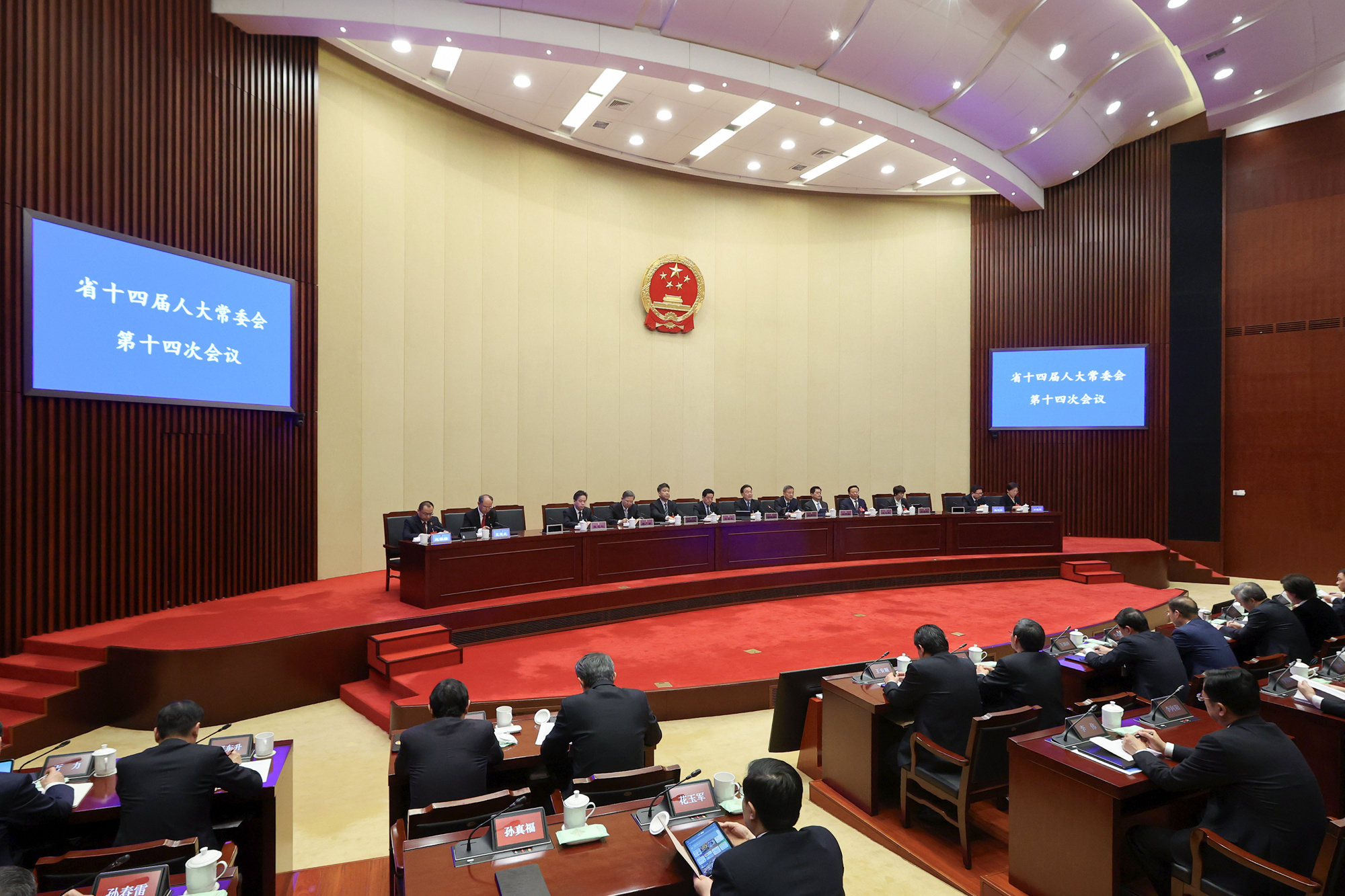 省人大常委会副主任樊金龙、张爱军、魏国强、曲福田、夏心旻、周广智、张宝娟和秘书长陈建刚出席会议。副省长陈忠伟、省法院院长夏道虎、省检察院检察长赵铁实,省监委负责同志列席会议。