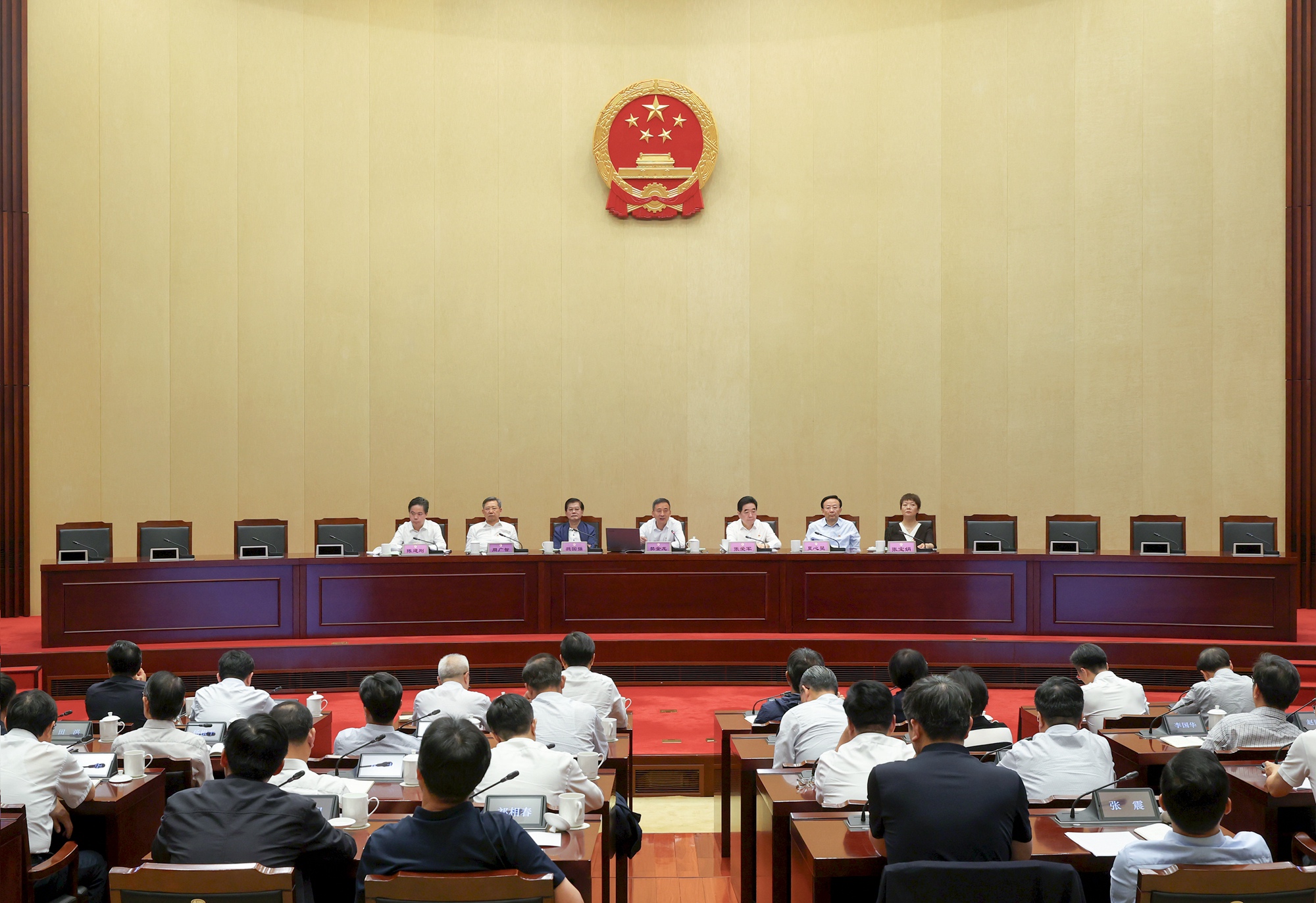 6月6日,省人大常委会召开警示教育会暨学习教育问题整改部署会。省人大常委会常务副主任、党组副书记樊金龙出席会议并讲话,副主任、党组副书记张爱军主持会议。