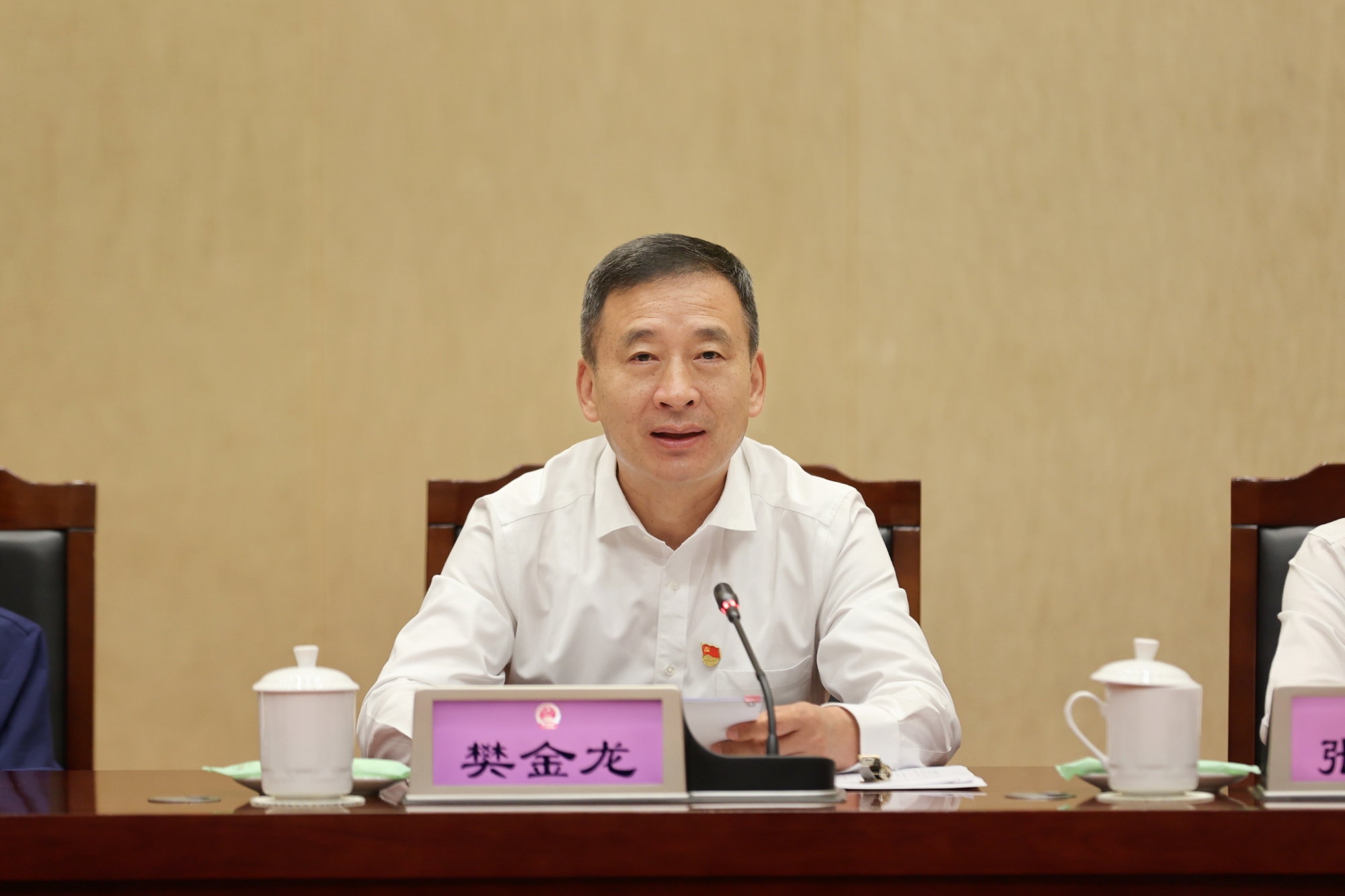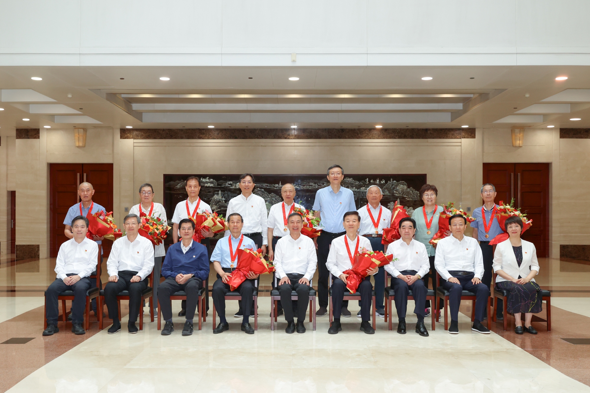 6月30日,在中国共产党成立104周年即将到来之际,省人大常委会召开机关党员干部大会,举行“光荣在党50年”纪念章颁授仪式,并组织观看党性教育专题片。省人大常委会常务副主任、党组副书记樊金龙出席会议并讲话,副主任、党组副书记张爱军主持会议。