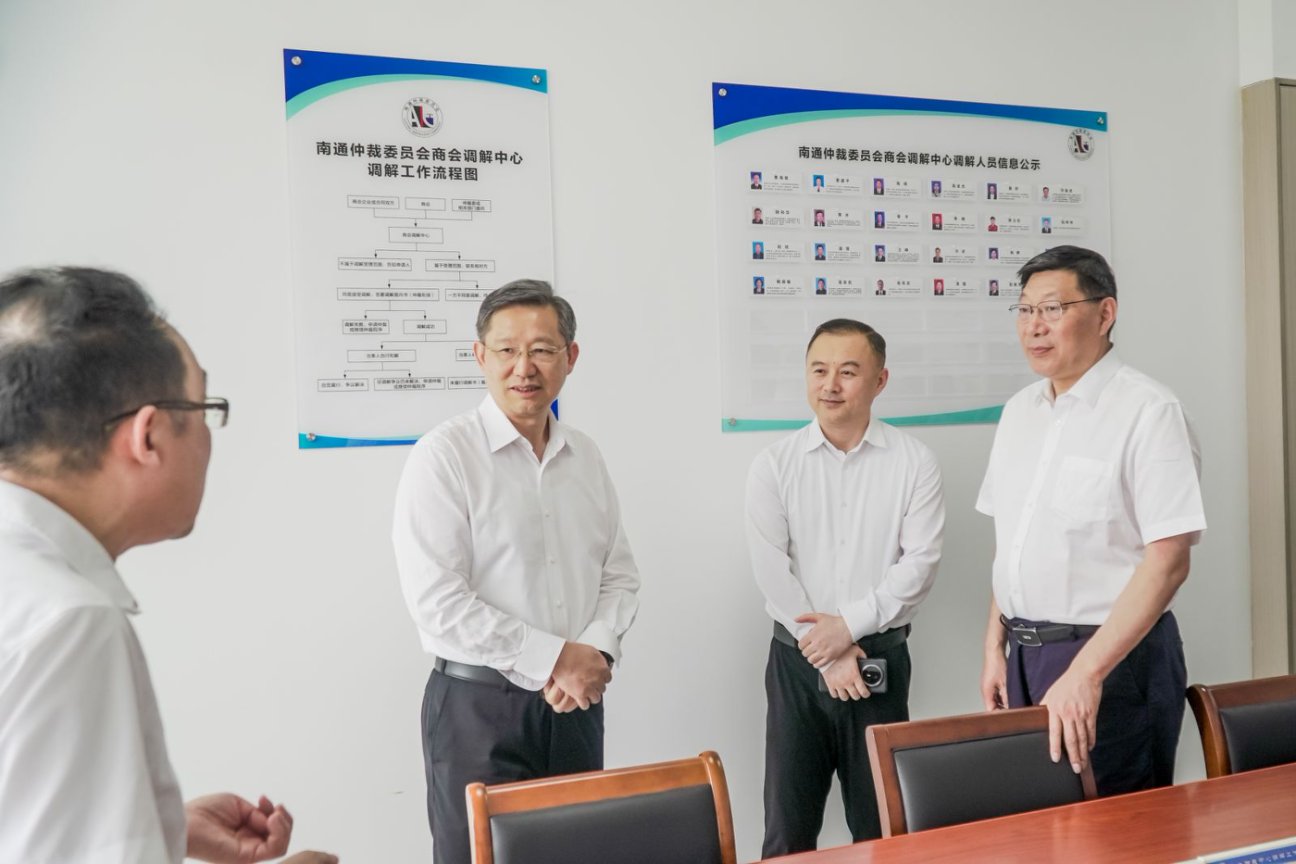 调研组一行到南通市仲裁委、商会服务中心实地调研,并召开座谈会,听取仲裁工作特别是涉外仲裁发展情况和相关意见建议。